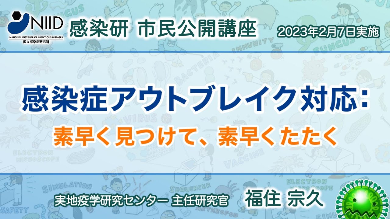 【市民公開講座アーカイブ】福住宗久『感染症アウトブレイク対応:素早く見つけて、素早くたたく』 (2023年2月7日実施)