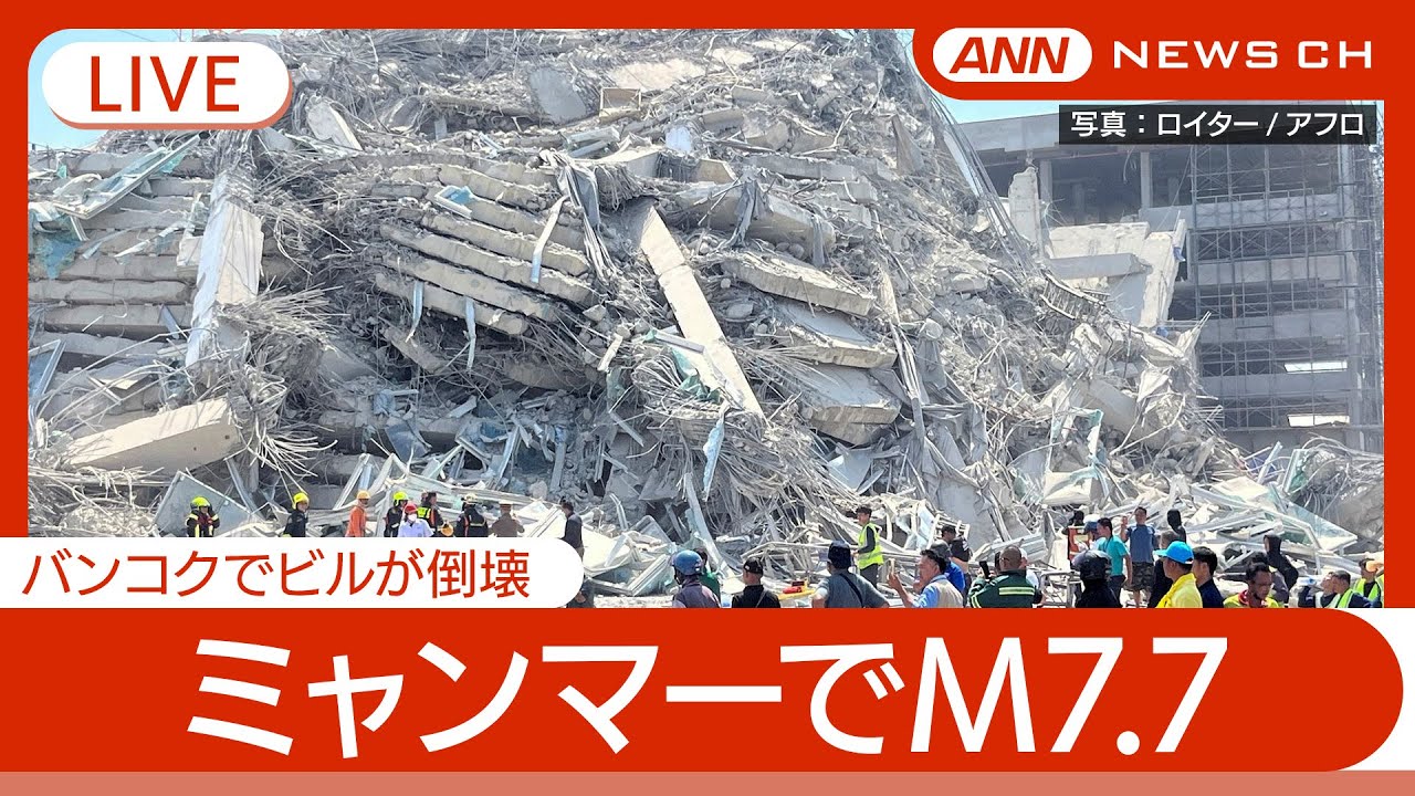 【地震ライブ】ミャンマー中部でM7.7の地震 隣国タイでも建設中のビルが倒壊 首都バンコクでも大きな揺れ (2025年3月28日)【LIVE】テレ朝/ANN