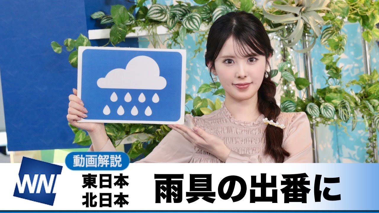 東北日本海側や北陸は雨が降ったり止んだりの天気で、東北太平洋側もにわか雨の可能性があります。関東も雨の可能性があり、午後は一時的に強まり雷やあられを伴うおそれがあるため注意してください。