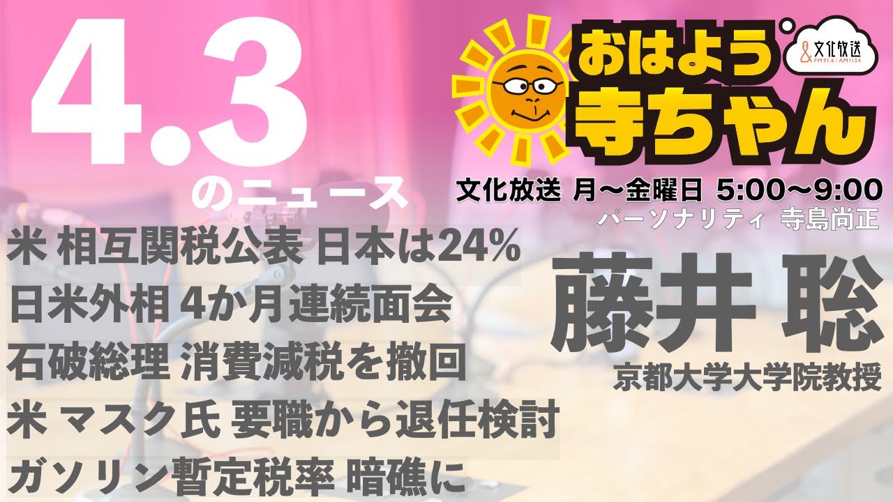 藤井聡(京都大学大学院教授)【公式】おはよう寺ちゃん 4月3日(木) 6時〜7時台