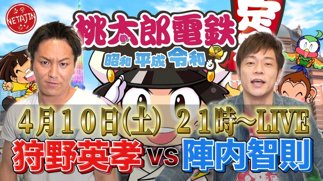 Share Facebook Twitter Pinterest LinkedIn 4月10日(土)21時からライブ配信! 狩野英孝さんを迎え桃鉄対決開催! ゲーム配信で数々の奇跡を起こしてきた狩野英孝を陣内はどう迎え撃つのか?! お楽しみに! ◼️陣内智則Twitter ネタ動画よしもと狩野英孝芸人陣内智則