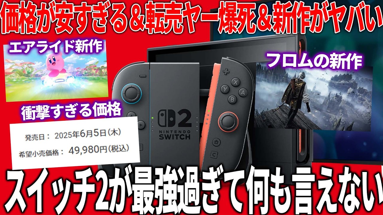 遂に発表されたswitch2の価格や性能が驚異的過ぎて草しか生えない…この時代に価格が4万内で対策完璧で転売ヤーも大爆死…フロム新作やエアライド新作も出て最強過ぎる布陣 【ニンダイ情報まとめ】