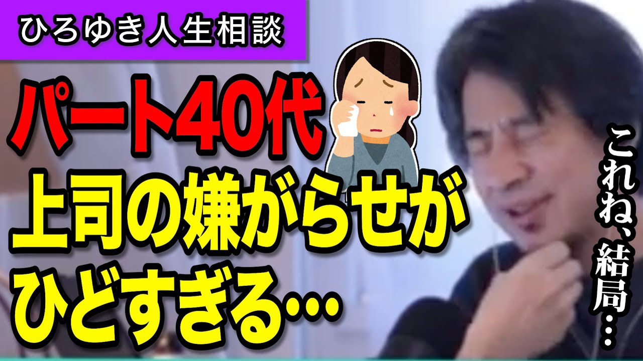 今回はパートの40代女性からの相談です。職場の女性の上司が無視などの意地悪をしてツライとのこと。ひろゆきの回答とは…
