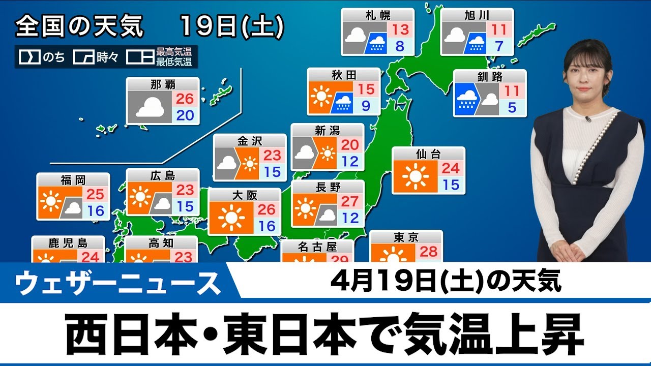 【4月19日(土)の天気】西日本・東日本で晴天 関東や東海は暑いくらいに