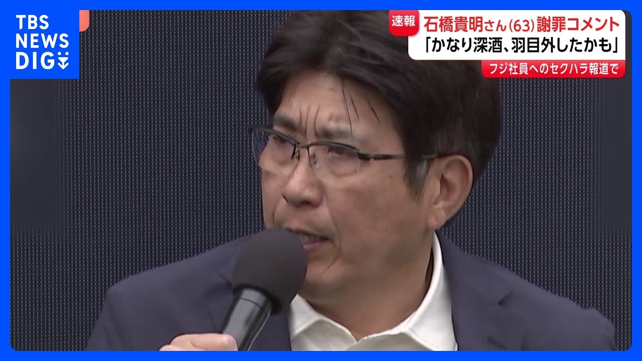 石橋貴明さんが謝罪コメント フジテレビ女性社員へのセクハラ報道で「かなり深酒、羽目を外したかも。女性に不快な思いをさせ大変申し訳なく思っております」|TBS NEWS DIG