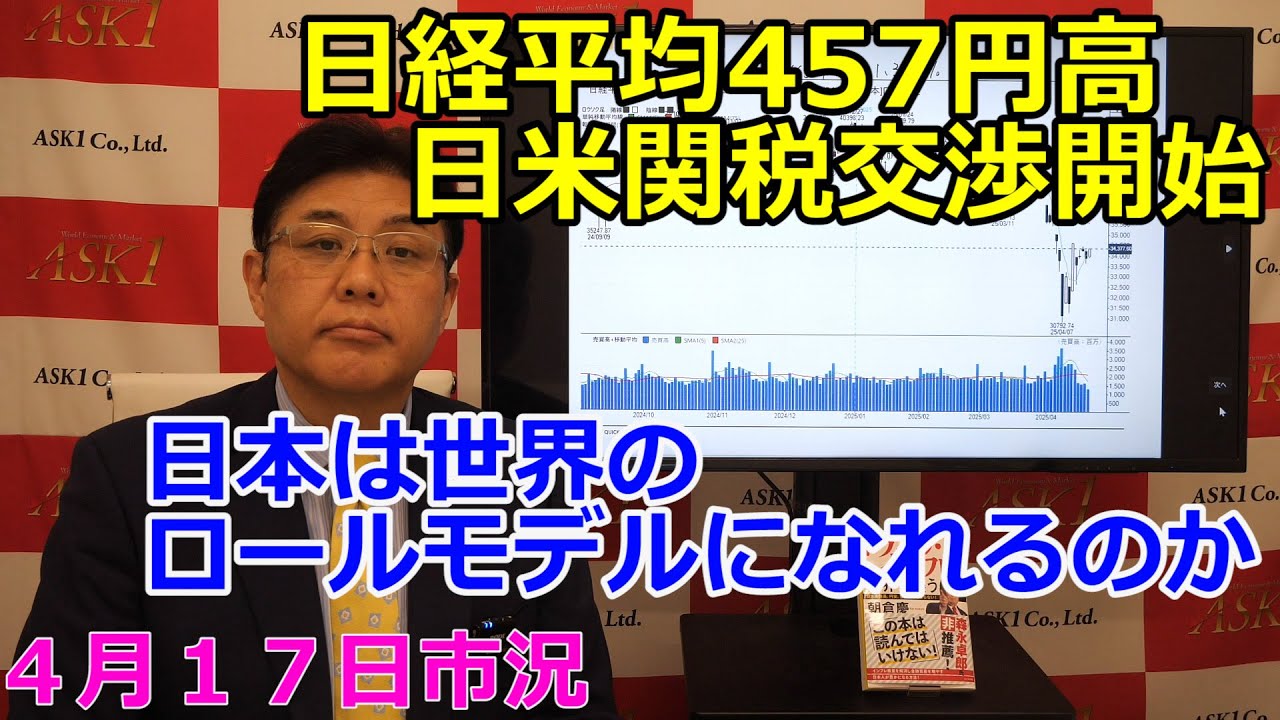 2025年4月17日【日経平均457円高 日米関税交渉開始 日本は世界のロールモデルになれるのか】(市況放送【毎日配信】)