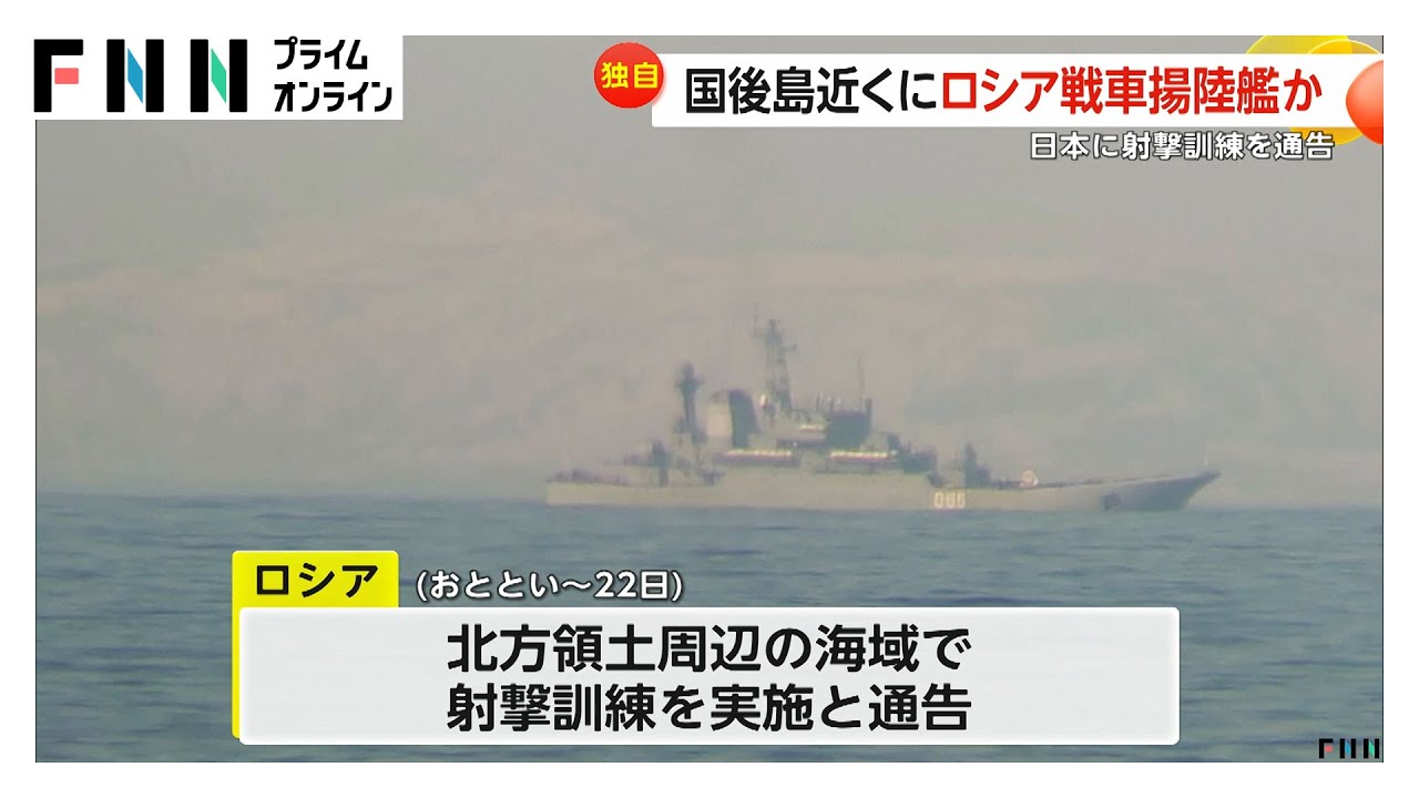 北方領土近くで、18日、ロシア海軍の戦車揚陸艦とみられる艦艇一隻が確認されたことがFNNの取材で分かりました。
