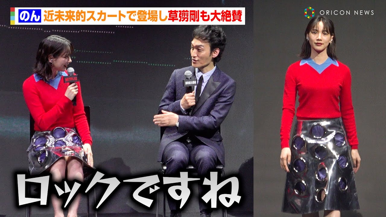 のん、近未来的スカートで登場し草彅剛も大絶賛「新幹線をイメージしました!」 Netflix映画『新幹線大爆破』発車記念イベント