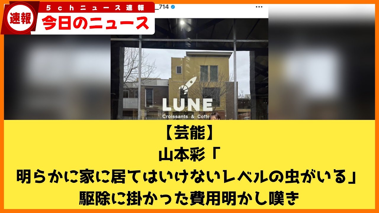 【2chニュース】【芸能】山本彩「明らかに家に居てはいけないレベルの虫がいる」駆除に掛かった費用明かし嘆き [ネギうどん★]【2chまとめ】