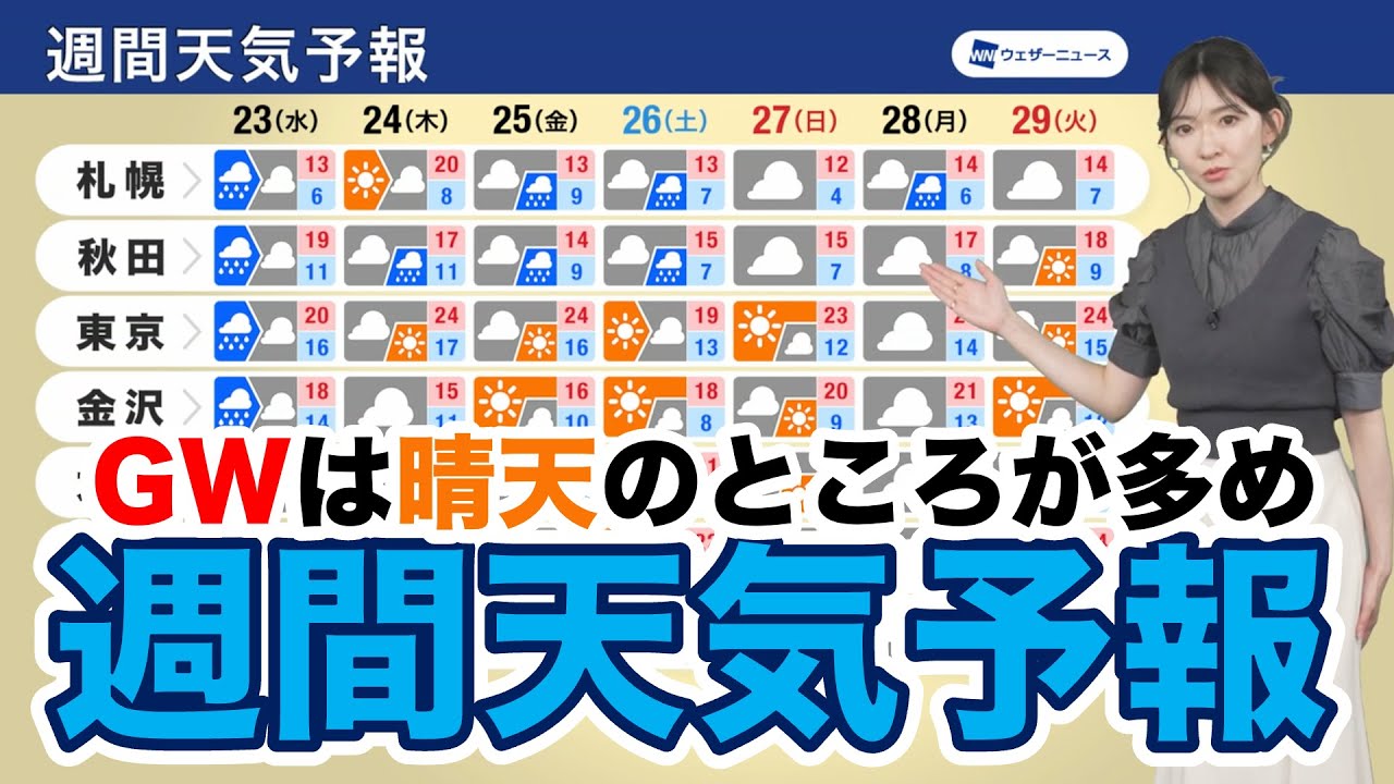 明日にかけては全国的に天気が崩れますが、ゴールデンウイークは東日本や西日本は晴れるところが多い見通しで、ネモフィラや藤などの草花や新緑などで季節を楽しむのも良さそうです。