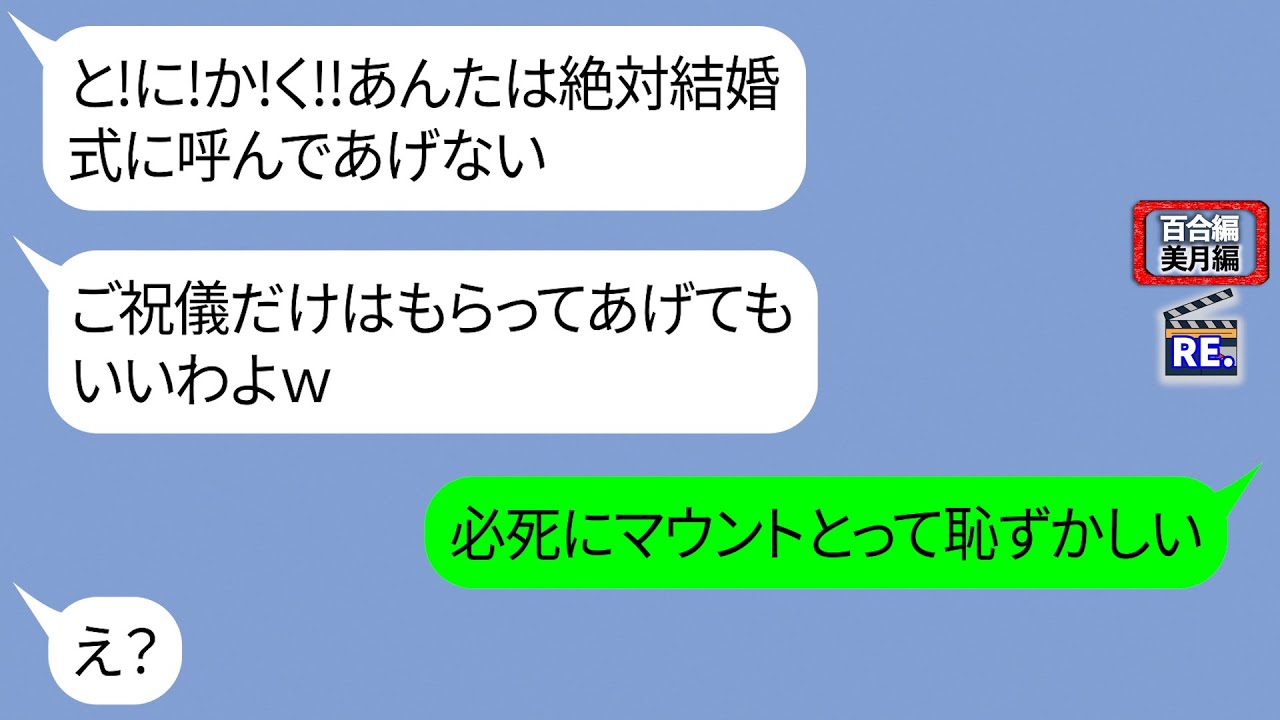 0:00 【百合編】高校の同級生の結婚式に呼ばない宣言の女「ご祝儀だけはもらってあげるw」