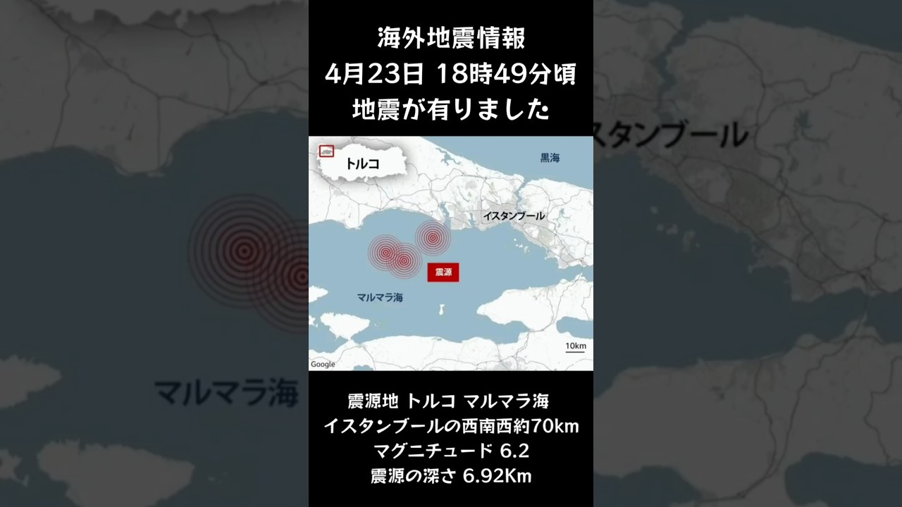 At around 18:49 on April 23rd, a magnitude 6.2 earthquake occurred 21km southeast of Marmara Ereğlisi, Turkey.