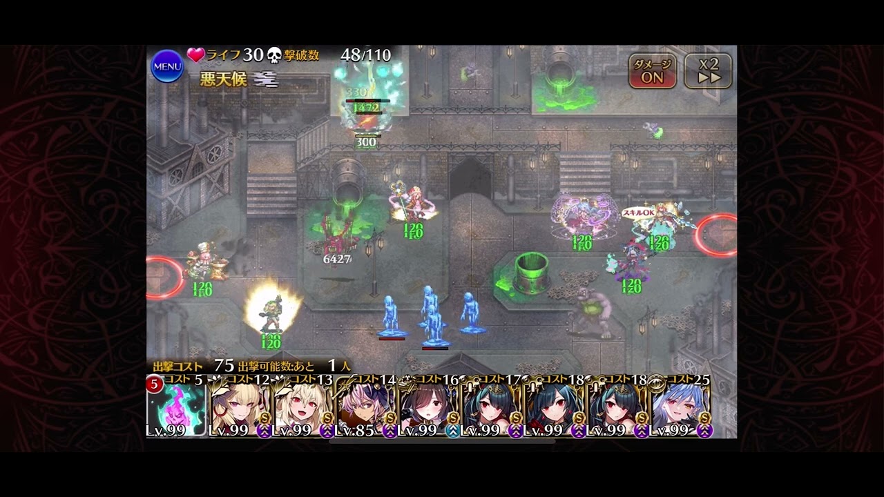 射程280 状態異常完全無効 スキル発動した瞬間に射程無視全画面味方回復