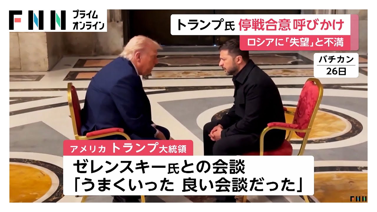 ローマ教皇フランシスコの葬儀に合わせて、アメリカのトランプ大統領とウクライナのゼレンスキー大統領が会談しました。ロシアとの停戦に向け意見を交わしたとみられます。