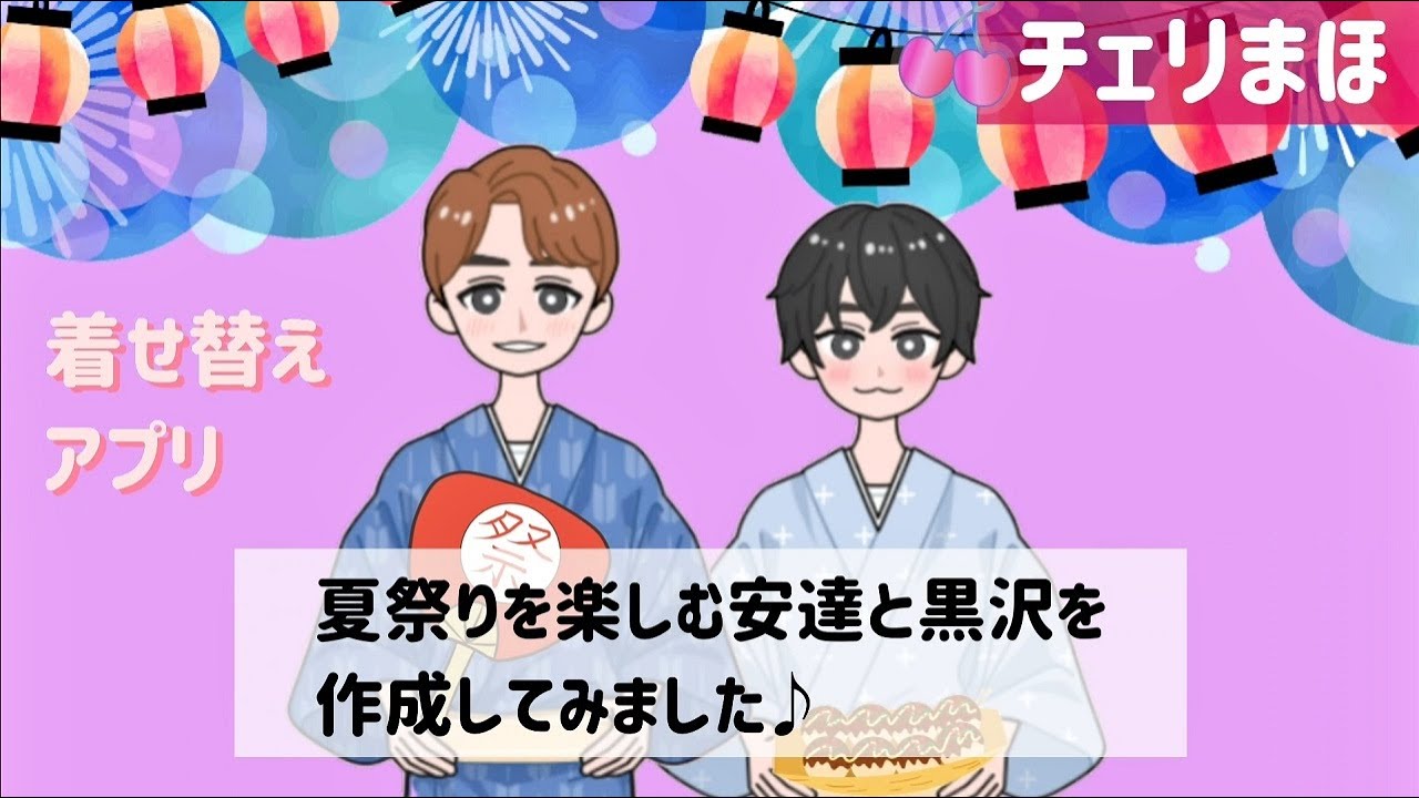 着せ替えアプリや編集アプリなどを使って、夏祭りを楽しむ安達と黒沢を作成しました^^