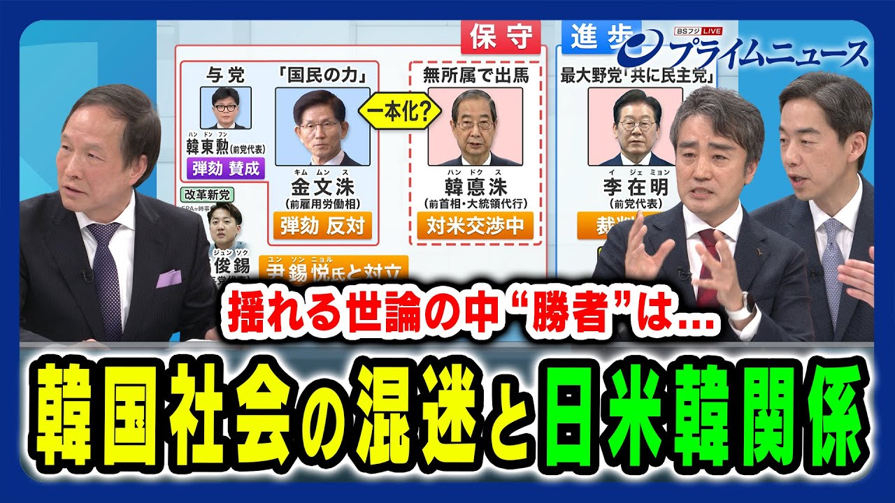 尹前大統領の罷免を受けて6月に実施される大統領選に向けた政治闘争が激しさを増す韓国。自身の裁判を抱えながらも有力候補とされた最大野党のリーダー李在明氏は、最高裁から“無罪判決破棄”の判決を下された。対する与党の保守勢力は“候補者の一本化”に四苦八苦し、米トランプ政権からの関税圧力は経済の先行きに暗い影を落としている。韓国社会の混迷ぶりと、今後の日韓関係にも大きく影響する大統領選の行方を徹底分析する。