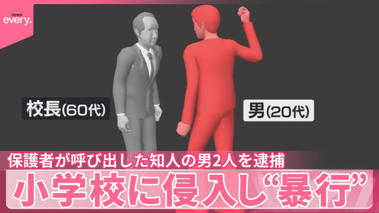 【現行犯逮捕】小学校に侵入し教員らに暴行…5人ケガ 保護者が呼び出した知人の男2人
