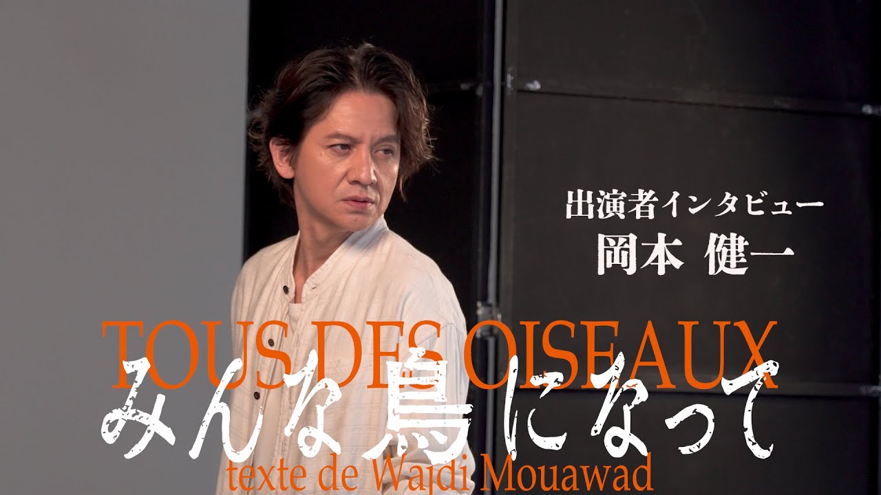 世田谷パブリックシアター公園みんな鳥に なってで青年エイタンの父親ダビッドを 演じる岡本健一です 。まず言葉、この登場人物の話す言葉の 内容が まず引きつけられるような分隊がすごく こう繋がってて 、最後の方と かなんかだんだんいろんなことが分かって くるうちに ちょっと読めない状態というか、あ うん。ま、今こう思い出すだけでもなんか 苦しくなって くる感じ 。ワードの各世界とかあの舞台の作りとか な流れとかっていうのは 毎回本当に勝事だけではいつも分からなく てでどういう世界になんのかあのこんなん 全く理解できないよってことを読んでると 感じるんだけれどもそれが上村の演出が 入ることによっって、あの、なんか1つの こう道が見えてくるというか、今までの どの作品でもやっぱ共通するのは、あの 、本当目を背けたくなるよう な世界っていうか、それと同時 にものすごい 大きな愛も感じますし、で、これは本と 舞台じゃないと表現できない世界なん だろうなっていう感じはしますし、是非 劇場に足を運んでくれたりすれ ば確実 にこれからのこう世界というかあの自分の 中のこう中がま、いい風に変わるような気 がしますので、え、楽しみにしてて くださいということですかね。はい。 [音楽]