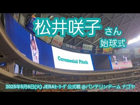 します。本日セモネをいただきましたはこまで現在はテレビやラジオで黒活中の松井さ子さんです。 [音楽] 初めまして松井子です。よろしくお願いします。 [音楽] [笑い] [音楽] さあ、松さんはこれまでのコンテリア大会に必要し入優勝しさは組を決点は国他の優勝を卒ということで、え、さらに今日は先ほどまでバッテリーム名古屋 1 人でのドラのさ前に演奏をしていただいたんですよね。 はい。 あの、雨の中だったんですけれども、あの、たくさんの方におまりたい本当に嬉しかったです。ありがとうございます。 [音楽] きっとごさんの皆さんも松井さんのメスを楽しんでいただけたこと思います。さあ、この後はセラボにあるチです。自信はでしょうか? [音楽] いや、とても緊張するんですけれども、あの、野球経験者の父とキャッチボールをやってきたので、ちょっと基助に頑張りたいと思います。 期待しています。それでは番お進めください。 よろしくお願いします。 皆さんどうぞ。ピシャ背番号選手。キャッチャー。そしてバッターはです。 [音楽] [音楽] それでは投球をどうぞ。 ナイスボール。 続いて勝を行います。 [音楽] さあ、ちなみに松井さんのユニフォーム津 35番は前の高校のことです。 [音楽] [音楽] ありがとうございました。 セレモピチを務めていただきました松井さんにどうぞ大発をお送り [音楽] [音楽] [音楽] た。