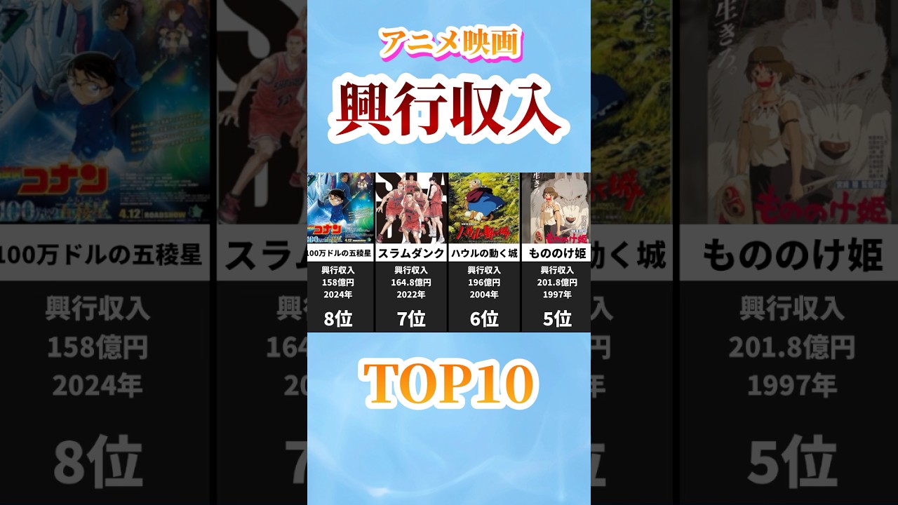 【アニメ史に残る】 日本アニメ映画 興行収入ランキングTOP10 #名探偵コナン #ジブリ #ワンピース