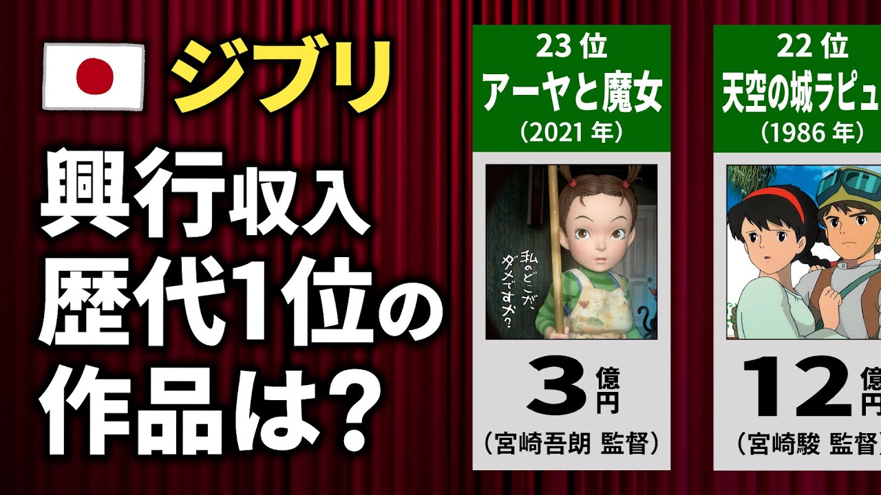 スタジオジブリによる長編アニメーション映画作品の興行収入(日本国内)ランキングになります。