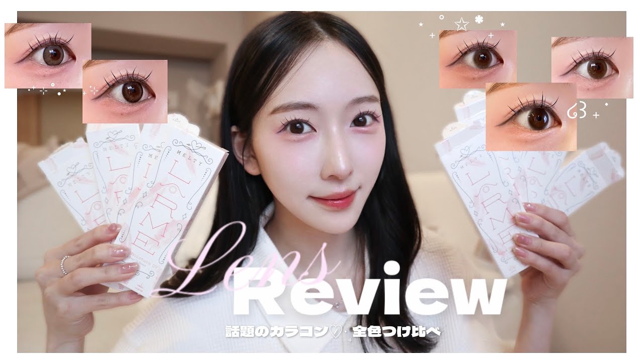 皆さん、こんにちは。お平野です。今日は ですね、あのYouTubeのコメントで リクエストにも頂いていた私がずっと イメージモデルをさせていただいている ラルムのメルティシリーズカラー コンタクトですねの付け比べレビューを やっていきたいと思います。全部今ね、出 てるのが1番新しいのも含めて16種類か な。ちょっと全部けながらご紹介していく ので、是非最後まで見ていってください。 それでは早速スタートです 。まずですね、私はもうこのラルムの メルティシリーズのイメージモデルを7年 、8年くらいやらせていただいているん ですけど、もう本当に良くて、ちなみに これ一切案件とかじゃないです。で、あの これ別に私のプロデュースとかでもないん ですよ。ずっとイメージモデルをさせて いただいているっていうだけなんですけど 、本当に良すぎて私もずっとこれを使って いるので、あの、私のお気に入りとかも 紹介しながら全部けていきたいと思います 。結構ね、 このメルティシリーズめっちゃ人気じゃん 。嬉しいことに。私は何もその制作には 携わってないんだけど、やっぱりね、自分 のモデルをしてるコンタクトが人気だと めっちゃ嬉しくて、結構ランキング コンタクトのサイトのランキングとかもう 1位から5位まで全部これだ、これの時と かあってめっちゃ嬉しいです。はい。 じゃあもう本当に数が多いのでちゃっちゃ と紹介していきたいと思います。私がね、 まずいつもあの1番よくつけてるのが トリフもカというカラーになります。こう いう感じ 。こういう感じです。縁もないので本当に ラガンにしか見えないです。正直これあの つけてないですって言ったらもうけてない ようにしか見えないくらい自然なのに光を 入れてくれてギルっとさせてくれるので私 はめっちゃお気に入りでもうねずっと使っ てます。私ね、あの、YouTubeだと 伝わらないかもっていうか、あの、そんな ことないよってみんな優しさで言って くれるんだけど、目がね、結構ちっちゃい の。横幅も縦幅もちっちゃくて大きい コンタクトをつけるとあの白目の幅が狭く なっちゃってちょっとバランスが悪くなっ たりすることがあるので撮影の時とかは あの盛りたいので大きいのをつけたりする んだけど普段はメイクがナチュラルって いうのもあって自然なのが好きなのでこの トリフカをけることが多いです。で、これ 私のあのお友達とかも真似してめっちゃ 使ってたりとか、あとメンズとかもこれ あの気に入って周りで使ってることが多い です。本当にラガにしか見えないので自然 に盛りたい方とかスクールメイクとかにお 勧めです。マジ会社とかにつけていっても バレないです。でもちゃんとこうレンズの やつを見てもらったら分かるんだけどこう 周りにちゃんとね光が入るようになってる の。もう絶妙なのよ。これに勝さるもの ありませんってくらい絶妙なので伝わるか な。ちょっと今回あのレンズの色味を 伝えるために太陽光プラスライトで ちょっといつも以上に分かりやすくして おります。どうでしょうか?こんな感じで ちなみに私の元々の目の色は茶色です。 ラルムメリティシリーズのサイトに飛んで もらったら目がいっぱいあるんだけどその 目は私の目のね、目の色が知りたい方は サイト見た方が分かりやすいかと思う。で 、ま、ふチアリーシリーズと縁なし シリーズがあるんだけど、一旦比較的 新しい色味の方の縁りをまとめてまず紹介 していきたいと思います。で、ちなみにね 、ラルムのコンタクト自体がアクア モイスチャーUVって言って、めっちゃね 、こう何層にもなって潤うやつになってる から目にも優しい。すっごい軽い漬け心地 なので。てかけたことある方なら分かると 思うんだけど、めっちゃ薄いのレンズが。 すごい軽いつけ心地なので、そういう面で もおすめです。じゃあ、まずこの大きめの シリーズ、ふチりシリーズから。ラルムの メルティシリーズは1番最初に出た時はね 、確か全部縁がなしだったの。くっきりし た縁はなくて、で、1番最初に出た縁やり がこのマロンドーナッツっていうカラー です。このマロンドーナツは14.5mm です。じゃあ、変わりますよ。はい。けて みるとこんな感じです。これはね、 くっきり縁がある超キュン系のやつです。 さっきのと比べるとめっちゃおめが キュキュルしたの分かるかな?真ん中は ちょっと薄めのカラーになっていて、縁が めっちゃくっきりはっきりっとしているの で、めっちゃ目がキュキュルします。で、 ちょっと今ね、光で分かりづらいんだけど 、真ん中の辺の縁より中のブラウンは結構 明るめの色味です。赤身のブランっていう よりは青味のブランっていうのかな? ちょっとグレーがかったようなもカっぽい 色味のブラウンです。なのでイベか ブルーベかで言ったらブルベの方の方が 合うのかなっていう風に私は個人的に思い ました。ちなみにもう今回のレビュー動画 は私のもう個人的なあの気持ち