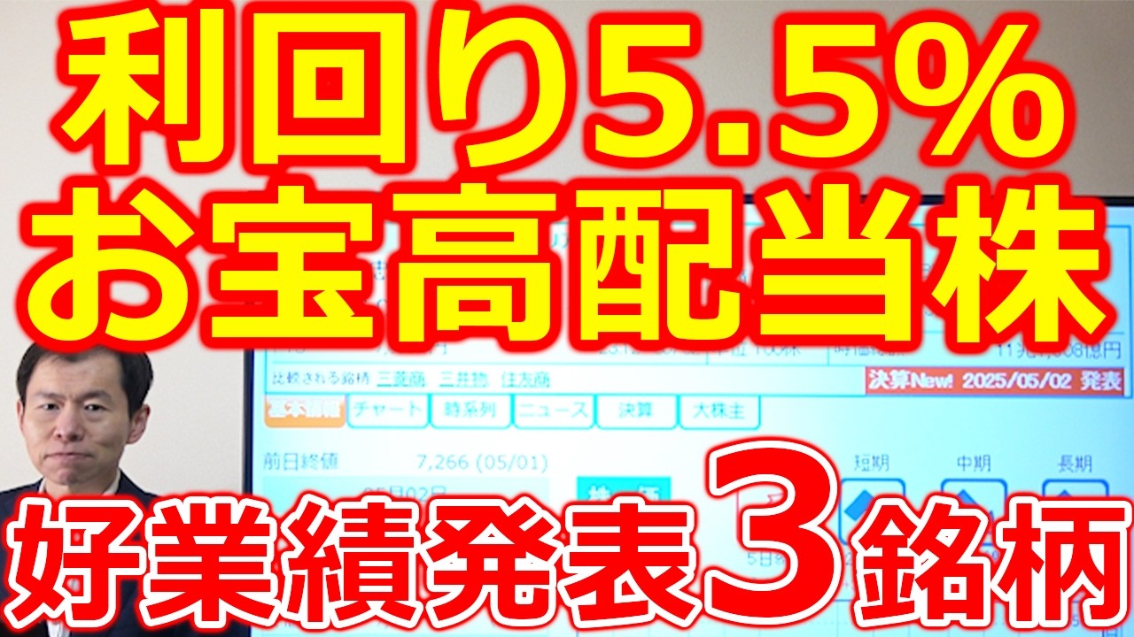 日経平均株価 わずか1か月で5000円上昇!次の好業績銘柄 配当利回り5.5%のお宝高配当株3社