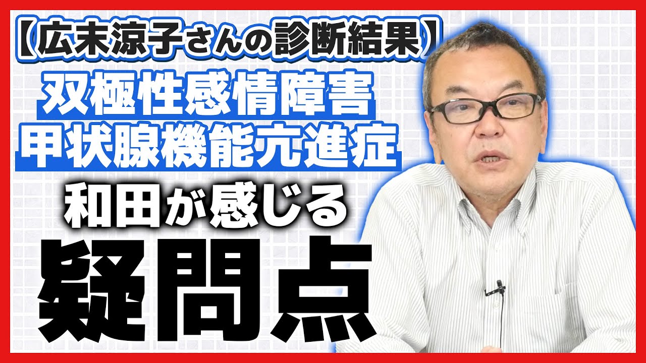 広末涼子さんが所属事務所を通じて「双極性感情障害(旧・躁うつ病)」および「甲状腺機能亢進症」と診断されたと公表された件について、精神科医・和田秀樹が自身の見解を語ります。