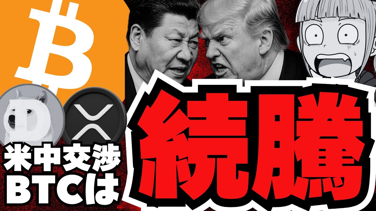 たった今ビットコイン急上昇 中なんと 10万4800ドルまで一気に上がってき たというところでございまして、今朝 めちゃくちゃいい朝を迎えております。 そして今米中交渉開始ということで世界中 がめちゃくちゃ注目。もしこれ交渉決裂し ちゃったらビットコインどうなるんだ みたいなそういう話をさせていただきつつ さらにリップルリップルのボットが今 めちゃくちゃ危険なんじゃないかっていう 説が出てますのでその後にもしっかり見て いきつもちろん上昇コインも本日ご紹介さ せていただきます。それでは最後までご覧 ください。ではやきましょう。い てらっしゃい。ズボジ仮疎通2通ニュース というわけでまずビットコインちゃんから見ていきたいんですがビットコインこの時点では 10万3000 ドルだったんですけどもそこからですね急遽一気に 10万5000 ドルに向けて上昇中というところでございます。で、その他のコインで見てみますと大幅に上昇してるのがイサルのエイダーあそしてアバランチで同時ということでこの辺りね後ほど見ていきたいと思っております。 で、ビットコインが10万5000ドル 付近まで上がってきた。もう久々にですね 、ここまで来たというところで、これです ね、もう強中にオールタイムハ過去最高値 更新するんじゃないかみたいなね、え、 そういう方々も一気に出てきたというのが この12時間のね、え、Xとかそういった 仮想通貨界隈を中心にそんな話になってる と。で、今ですね、大きく動いていること の中心としてはやっぱりですね、この米中 の貿易戦争、これがですね、ま、緩和に 向けて、え、動くんじゃないかというよう な、そういう話が出てきているという ところで、え、アメリカと中国がですね、 今スイスで、え、貿易交渉を再開している というところで、追加ね、え、最大 145%という風に言われてますけれども 、この欧州に歯止めをかける動きを見せる というところでございます。で、え、両国 ともですね、ま、経済への悪影響っていう のが深刻化してるわけですね。両方とも ですね、もう瀕死状態というところで、 特に中国はやばいです。え、工上の生産も 低下してますし、でも売れないもんだから 在庫もめちゃくちゃ余っちゃって るっていうような、そういう状況に直面し ているっていうことですね。で、今回の 会談は立場の確認とですね、今後の交渉 計画を話し合う初期段階っていうことなん で、まだですね、こう完全に合意するよっ ていうのはしばらく先になりそうだっての がこの直近の見通しではあります。じゃあ これでビットコインどうなるのというよう な話があるんですけれども、2パターン ですね、このまま競技が進展するパターン と決裂するパターン両方考えてみたんです が、まず進展パターンですね。で、え、 これどうなるかって言ったらですね、米中 の、え、完税戦争が終わりを迎えるという ことなんで当然ですね、景気の不安は交代 します。あ、これもう今後景気良くなって くるんじゃないかっていう見通しが立つ わけですね。で、そうするとですね、え、 投資家っていうのはリスク資産に資金移動 していくとかいう風に考えられるわけです ね。なので株とかね、ビットコインみたい なものに普通に考えたらですね、え、資金 を移動しやすいだって今まで、え、景気が 不安だから金とか買ってたようなそういう 状況だし株も売ってたわけですよね。だ けど景気がこの後良くなってくるって 見通しが立てば当然ですね、リスク資産に オンされるというところが予想されるって いうところがあると思うので、で、え、 実際ですね、え、ま、そうした中でね、 このビットコインっていうのが 9万7000ドルから10万3000ドル にまで、え、上昇してきてるっていうのは 、あ、ま、こういった背景もあるかという 風に思っているわけですね。じゃあ今度逆 に講決裂したらじゃその逆なのかっていう ような、ま、そういう話なんですけれども これですね。え、ま、私の見立てですよ。 あくまで私の意見ですけども、これ競技が こじれるとですね、今度は株安になる。 これはま、分かりやすいですよね。え、 リスク資産がこのまた売られるで金が高く なるっていうような、ま、株安金高みたい な、そういう構図になってくるかと思い ます。で、え、政府に奪われにくい資産と してこれですね、ビットコインがやっぱり 結局買われるんじゃないかっていうような 、そういう気が個人的にはしているという ところですね。だから、え、これですね、 え、2019年の人民源下落という タイミングがあったんですけれども、その 時もビットコインは実は急しているという ことが分かっています。で、それですね、 え、19年の8月5日ですね、え、この時 に人民源が対ドルでですね、え、7元を 割り込むというのがあって、要は中華の 中国の通貨が、ま、非常に急落してしまっ たということがありました。でもその一方 でビットコインは上がったと