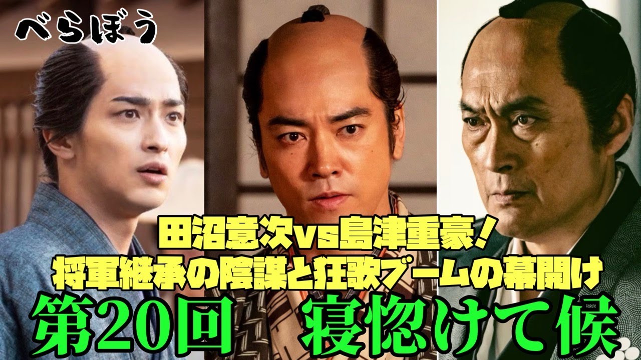 [音楽] [音楽] ベラボ第20 寝ぼけて僧老ろ。江戸城に静かにしかし 確実に忍び寄る波 。その波の正体は将軍の座を巡る陰謀。誰 が次の将軍になるのか。誰が江戸という 巨大な船を操るのか。その答えは田沼おつ の胸のうちにありました 。しかし背を黙って見過ごすものなどい ません。さ磨の名門島の当初島ず しげ秀ただの大名と思う 中彼の一言が江戸城をいや幕府全体を揺が せることになります。一方吉原では1人の 出版人が江戸の文化を塗り換えようとして いました。その男の名は塚や 十ブ郎時の将軍職を巡る重厚な駆け引と 庶民の笑いと知恵が交差する強化ブーム 。この第20回江戸の表と裏光と影が 激しくぶつかるまさにベラボな1話だと 思います。将軍の光景には1つ橋の豊千を 総言したのは時の権力者田沼。誰よりも 家春の信頼を得ていた男が次の政権の人事 まで踏み込んできました。しかしこの話に は裏があります。豊千にはすでにさの姫と の円談がありました。だが、たぬきつぐは こう言い放ちました 。性質が無理なら即質にすれば良いとこの 発言にさは爆発しました 。うちの姫を即扱いとは何事か土圧点を ついた島ずし秀でまさにさの火山が噴火 する瞬間です 。この一見は単なる婚姻トラブルではあり ません。 将軍継承に直結する大妙たちの維新と野望 が絡んだ国家の1大事 家春田沼 し秀将軍の母そして春田までを巻き込み ます。歴史を変える日種が今ようとしてい ました 。聞かれる男ず しさの殿様はただの気象の新い武士では ない。略結婚の裏にある家の核と誇りに 真こから牙を向ける存在です。うちの姫が 即質だと。江戸幕府はさを舐めておる。 茂秀では黙っていませんでした。彼が 持ち出してきたのは豊千代の養育者が生前 に残した文書さ磨の姫こそ性質に ふさわしいという文字が刻まれた遺言です 。政治の世界では言葉は剣になります。 そしてし秀はその剣を抜いたのです 。江戸城の空気が一変する。1回の大名の 主張が幕府の中心を揺がす。それほどまで に成婚痕は政治の最前線だったということ です 。では田沼置き継ぐの本当の狙いとは何 だったのか ?その答えは永続だったのではないかと 思います。自分が幕府から去った後もたぬ の意思を残すこと 。それこそが彼の契約だったのではない でしょうか。豊千を将軍に種姫を乱い どころにその2人が結ばれれば田沼の決脈 家春の移行幕府の未来が一体化します。 ちなみに豊千とは11代将軍徳川家なりの 要名です。田沼はただのワ路政治家では ありません。彼の目線は未来にありました 。100年後の江戸まで見据えた脅威の 長期戦略です。しかしその未来にさと茂秀 は邪魔でした。だからこそ即質という言葉 が飛び出したのではないかと思います 。表向きの笑顔の裏で政治という名の戦が 静かに始まっていたんだと思います。さて 、一方その頃吉原の片隅でまたしても爆発 寸前の文化の戦争が負け起こっていました 。塚や獣郎が世に出した菊層を撫でやかで 美しく、しかも心にしみる庶民たちは夢中 になりました。これはただの本じゃない 時代を移す鏡だ 。だが、それを横目に見ていたのが ライバル西村屋。こちらは清永の絵を使っ て勝負をかけたが、値段が高すぎました。 しかし銃は即座に動きました。ならば俺が 清長風の絵で庶民科学で出してやる。江戸 の本屋たちは次第に銃を選び始めました。 なぜなら彼の本には庶民の味方という魂が 込められていたからです。津や獣ザブ郎が 出会った新たなる文化の渦。それが強化 でした。案内人は太田南歩。江戸1の とぼけた人。ユーモアと皮肉と風で人の心 を打ち抜く。その狂器のセンスには衝撃を 受けました。 これはやばい。でも面白すぎる 。うナぎに寄せる恋というお題で武士も 町人も真顔でバカな歌を読む。この真剣な ふざけ が江戸の人々のハートを掴んで話しません でした。スタジは強化俺が流行らせてやる 。周りは大爆笑。でもその言葉がやがて 江戸を覆い尽くす文化の津波になることを この時はまだ誰も知りませんでした。ガ ドラマベラボ第20回 寝ぼけてろ。それは江戸を揺がす表と裏の ダブルクライマックス 。表の世界では将軍の座を巡って置き継ぐ と刺激が政治という名の刃を交える。裏の 世界では佐獣が言葉の魔法強化に出会い 江戸文化の未来を切り開こうとする。この 大比こそがベラボの醍醐みではないかと 思います。政治と笑い、権力と庶民、 それぞれの立場でそれぞれが本気で江戸を 動かしている 。次回教科は本当に流行るのか。そして 田沼政権の未来は江戸という巨大な舞台の 上で競争のドラマはまだまだ続きます。 ドラマ ベラボ映画の夢話第20回寝ぼけて走ろは 日曜夜8時から放送予定です。放送まで 楽しみに待ちましょう。ご視聴ありがとう ございました。 [音楽]