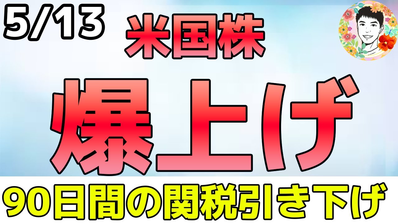 おはようございます。ともです。5月12 日月曜日の米国株市場が閉まりました。 このチャンネルは毎朝マーケットが閉まっ た直後に速報動画としてお届けしてます。 朝一で最新の情報を知りたいよという方は 是非チャンネル登録をよろしくお願いし ます。さて今日は株式市場大きく上昇し ましたね。週末に行われたアメリカと中国 の貿易に関する解合でお互い完税率を90 日間大幅に引き下げると発表したことで マーケットが急闘しています。指数見て いくとニューヨークダウがプラ 2.81% 4万2410.10P500+ 3.26% 584.19+4.35%で 1万8708.34ラッセル2000+ 3.42% 2092.20です。で、原油+ 1.67%1バレル62ドゴールドが -3.09%で 3240ドルドル円一気に円安ドル高方向 を動いて148円42000円仮想通貨 ビットコインが小幅の動き 10万2255ドルです。で、国際の 利回りも動きましたね。10年祭が 4.475、2年祭の利回り4.008と いうことで全体的に上昇。つまり債権が 売られて株式市場に資金が流れているのか なというところでリスクオンフィ& グリードインデックスを見ても66という ことで先週からどんどん強気になってい ます。で、今日は先物からぐんぐん上昇し ていましたね。まず日本時間から窓を開け て123%の上昇をしていました。この時 詳細は発表されていなくてスイス時間に 発表するということで期待感が高まってい ました。で、日本時間の4時に入って ヨーロッパのマーケットが開いた時ですね 、ここで完全の引き下げ率に関して詳しい 情報が出てきたということで大きく上昇し ていきました。で、そこで一旦利益確定の 売りかなというところで押されたんです けれども、引けにかけてまた上昇していっ たということで、ま、明日につがる強い 動きだったんじゃないかなと思っていませ ん。で、今日のS&P500の冷やし チャートを見ていくと、ま、しっかりと この赤の200日移動平均線を超えてきて 、前日高値、そしてここ最近の出来高より も増えてきていますので、ま、しっかりと 出来高を伴った上昇ということから機間 投資化の会なんかも集まってきているかと 思います。で、NASダックを見ても 200日移動平均線をすっかりと上回って きていて、3月の戻り高値というのも あっさり上抜けてきましたね。で、出来高 も増えています。ま、今週CPIというの も出てくるので、そこでインフレの再念と いうのがなければ上昇続くんじゃないかな と思ってます。で、今日のヒートマップは もう全体的に3%近く上昇してる銘柄多い ですね。で、大型テックに関しても NVDIAヒットに反動体上昇。 Amazon,Apple、Metaテ Teslaなどが6%から8%の上昇。ま 、一部公益などの高配当銘柄が売られて いるということからも資金の動きがリスク オンになっているかなと思います。そして セクター別で見ると、やはりAmazon とTraラの上昇が大きいことから一般 消費剤がプラ5.35%、その後 テクノロジーがプラ4.64%、工業 コミュニケーションサービス、ヘルスケア と続きます。ではニュースを見ていきます 。アメリカと中国が90日間の完税率の 大幅引き下げで合意したということで株価 急上昇していきましたね。今後3ヶ月を かけて総意の解消を図る時間的猶予を持つ ことになりました。アメリカは中国に対し て145%の完税を30%に引き下げます 。そして中国もアメリカに対して125% から10%に引き下げます。そして 別セント財務長官は双方共に デカップリング経済的分断を望んでいない という点で一致したと。つまり経済的にも 敵退したくないということには変わりが ない。今回の交渉でアメリカにとって プラスになりそうなのはフェンタニル対策 に関して非常に活発で実りある議論ができ たということです。で、体中関税30%の 打ち訳けですが10%は基本税。そして フェンタニルの20%課税ということで 10%からプラ20%となると、ま、今後 フェンタニルに対して中国が積極的に動く となればこの20%の課税も撤廃されて 10%になる可能性というのも出てきます よね。で、5月14日までにこの完税率を 変更する予定ということなので、ま、ほぼ 即日発行みたいな形になります。そして 中国が4月2日以降にアメリカに対して 講じている非関税対抗措置を停止、または 撤廃するために必要なあらゆる行政措置を 講じると。さらにフェンタニルの他に問題 しているのが貿易額の不近衡。2国間の 貿易赤字を均衡させるための購入協定の 可能性があると考えている。つまり中国が アメリカに対してある一定の金額を 買いつけるよという約束をするかもしれ ないということですね。はおそらく穀物に なるんじゃないかなと思います。第1次 政権以降ブラジルからの輸入が増えてい ますので、ま、それをまた一部アメリカに 振り分けてくるのではないかなと。こう いった中国との合意を受けて各国に プレッシャーかけようとしてますね。 イギリスとスイスは貿易協定の最前線に 立っているが、EUはそれよりずっと遅い と。このスイスというのは中国との階段が スイスで行われたので、ま、そのことかな 