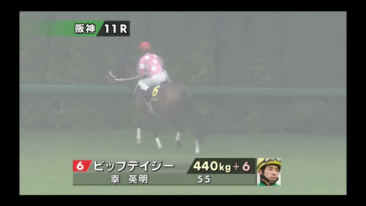 [音楽] 阪神競馬場11レース第85回大花賞G1 芝の外回り校1600m今年の出走18頭 の入場です [音楽] 。願いは1つ勝利を求めて1番ブーレブー 。今日の馬体重は480km。前回との 比較はプラ6km。安城浜中スル機種負担 重量は55kmです 。スピードはベリーベリー。2番 エリカエクスプレス456km増減なし。 軽55km 逃げるにしかず本気出す。3番マウス 486km-8km田辺広55km 。安城が掘れ込む高い能力4番湘南 440km-2km池添騎種 55km素敵な夜に花を添え5番 ボンヌソレ442km-6km夕 [音楽] 55km幸福のひ咲せます6番ビップ デイジー440km+6km三秀明 55kmゴールが私を待ってるの7番 エンブロイダ482km増減なし。短期 免許で来日ジョワイラ機種55km [音楽] 。前へと進め美しく8番ウォーター ガーベラ438km-8km竹豊騎種 [音楽] 55km2歳女王マじしてのお出ま9番 アルマベローチェ496km+12km 岩田未来種55km 黄昏れの町に幸せ運ぶ10番トワイライト シティ452km-2km松山後機種 55k [音楽] 掴んだチャンスは物にする11番 ミストレスです。478km前回サウジ ダービーに出走。馬体重の比較はありませ ん。流騎士 55km初のマイルも何のその12番 リンクスティップ472km増減なし ミルコデムーロ機種 55km長を磨いてフルスイング13番 チェルビアット482km-2km北村一 騎士 55km父の勢い今週も14番ダツエラン 488km-4km段の体勢機種55k [音楽] その走り夢じゃない。15番クリノメイ 440km-6km酒井学べ 55kmターフのターフを踏みしめ感動を 16番村ら464km-6km安城は西村 厚市から藤岡ユス騎士に変更重量変わらず 55kmです [音楽] 。11無の走りを晴れ部隊で17番 プリムツール450km-4km秋歴 55km夜の悔しさ2で晴らす18番 ブラウン44km+16km横山竹 55kmです [音楽] 。雨のに集った18頭芝コースはやおです 。阪神11レース第85回大花賞G1 スタートまでしばらくお待ちください。