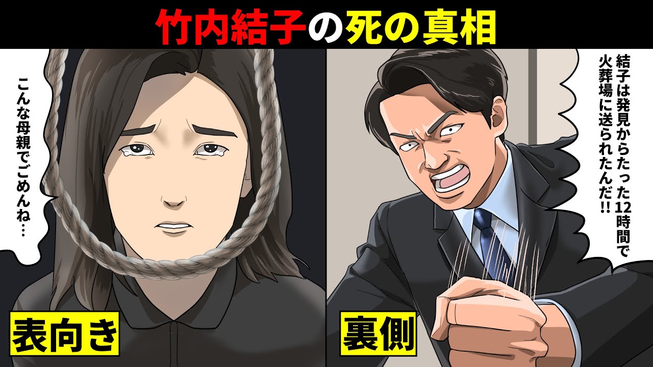 竹内さんのケースは警察によって異常な 速度で死因が断定されたんです。旦那さん の通報から6時間後には自施と決定付け られ、さらにその6時間後の午後2時20 分頃には遺体を乗せた者が渋谷所から出発 し最場に暗知されました。まるで何かを 隠蔽しているかのように不自然でしたよ。 [音楽] 年9月27日、女優の竹内裕子が東京都 渋谷区の自宅マンションのウォークイン クローゼットで亡くなっているのが発見さ れた。竹内は数々のドラマや映画で主演を 務め日本アカデミー賞優秀主演女優を3度 受賞するなど実力派女優として活躍。生活 では2005年に歌舞伎役者の中村指導と 結婚し長男を設けるも2008年に離婚し たがその後2019年には事務所の後輩で ある中林大機と再婚し2020年1月には 次男を出産していた。幸せの絶調家に思わ れたそんな矢の不法だった。嘘だろ?あの 大女優な滝内裕子が自ら7月に三浦は9月 14日には足せいそして同日27日に竹内 裕子もう俺何がどうなってんだかわかん ねえ よに一体何が起こったのか彼女が亡くなる までの当日の様子はこうだ。お母さん、 今日学校でさ、友達が授業中に寝てたって だけで廊下に立たされたんだよ。今時 そんな昭和みたいなことする学校がある かっての 。お父さんたちが子供の頃なんて毎日見た 光景だよ。今は何でもかんでも体だんだっ て言いすぎんだよねえ。ママそう。私 なんてスカートが規定より1cm短いだけ で学校来るなって言われたんだから。 なんだよ、もう。今の時代は今の時代の苦労があるっての。 さて、ご馳様、私ちょっと2 階に行ってくるね。 竹内夫妻。14歳の長男8ヶ月の次男の4 人での夕食後、竹内は家族に2 階に行くと言い残し、しばらく下に降りてこなかった。疲れて寝てしまったのか。 そう考えた夫の中林は約1時間後に竹内の 様子を見に行ったのだが、そこで悲劇が 起こっていた。ゆう寝ちゃったのであれ誰 もいないけど。おい、ゆえ。しっかりしろ 。お母さんが大変だ。救急車を呼べ。4 人が食卓を囲む一家だ乱の夕食のすぐ後の悲劇など誰が予想できたであろうか。それほど追い詰められてたなどとは家族ですら気づいていなかったのだ。 お母さんどうしてどうしてなんだよ。僕たちを置いていくなんてあんまりじゃないか。 当時は2019年から発戦していた新型 ウイルスの脅威が世界中を恐怖の底に 突き落としていた時期だ。人々は感染を 恐れてあらゆる活動を自粛し、外にすら 気軽に出られないほどだった。そんな影響 から竹内も霊に盛れず多くの仕事を失い、 また多くの仕事をセーブしていた。それが 彼女を追い詰めた。そう考えるものが大半 だっただろう。しかも彼女にとって仕事を 失うということは昔のトラウマを思い出さ せる呼び水にもなってしまっていたのだ。 1990年代半頃、当時まだ中学生だった 竹内の両親は離婚師、そのすぐ後最愛の 母親が大病の末に39歳という若さで高し た。父親と同居することになった竹内で あったがほどなくして父親が再婚。結婚 相手には連れ子3人がおり、全員が男で あったが、彼女は多な時期に彼らと同居 することになったのだ。お母さん、この家 にもう痛くないよ。お父さんは私のこと なんて考えないで自分のことばっかり優先 してるし、この間まで他人で、しかも男3 人と同居なんて無理よ。そうして居場所 を失った竹内は母方の祖母の家で 過ごすことが多くなっていった。お [音楽] ばあちゃん、私ずっとここにいていい?あの家に帰りたくないの。ずっといたらええ。あんたは私の大事な孫じゃ。家族が一緒に住むのに不思議なことなんて 1つもありゃせんよ。 そうして時は立ち、彼女に天気が訪れたのは高校入学直前の頃だった。ちょっとすみません。今学生さんですよね。 すごくおき麗なので芸能界とか興味ないですか? え、私が芸能界にですか? こうして竹内は芸能会入りを果たし、大女優としてのキャリアーを積んでいった。つまり彼女にとって芸能界、引いては女優業というのは居場所を失った彼女にとっての大事な寄り所だったのだ。そんな寄り所を新型ウイルスによって奪われ、精神的に追い込まれ。 [音楽] そう考えるのが最も自然であったが、それ と同時に彼女の死には不可快な点がいくつ も存在していた。実はね、竹内さんは同年 に亡くなった三浦は春さん、明日田生産の 不法と状況が自然なほど似ているんですよ 。と言いますと、全員が示し合わせたよう にクローゼットの中で亡くなっていたん です。しかも3人とも意がなく信じられ ない速さで警察によって自主と決定された んです。特に竹内さんのケースは異常で、 旦那さんの通報から6時間後にはメディア で自主と報道され、さらにその6時間後の 午後2時20分頃には遺体を乗せた車が 渋谷所から出発し最場に暗されました。 解剖すらされずにですよ。私もね、その ことが気になって捜査関係者に取したん ですけど、彼は驚くようなことを言ってい ましたよ。竹内さんは国民的な女優です。 万が一経験
