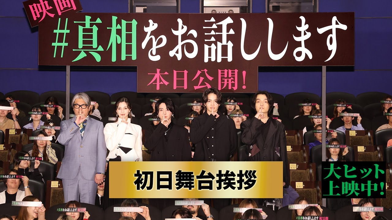 映画真相をお話します。キャスト監督の皆様です。どうぞ大きな声援と拍手でお迎えください。 大森さん菊さん条さん 岡山さん監 [拍手] 映画をお話しします。キャスト監督の皆様です。今一度大きな拍いたします。 [拍手] ありがとうございます。それでは早速皆様にご挨拶を頂戴いたしましょう。 まずは大森本木さんご挨拶お願いいたします。 はい。え、本日はこの映画をお選びいただきお越しいただきありがとうございます。え、謎の男鈴木を演じさせていただきました大森本です。今日は、え、短い時間ですがよろしくお願いします。続いて菊ふ馬さん、お願いいたします。 [拍手] はい、皆様本日はお集まりいただき誠にありがとうございます。桐山を演じました菊口です。 今日はどうぞよろしくお願いします。そして中条あ美さんです。お願いします。はい。え、皆さん今日はお泊まりいただきありがとうございます。え、ヨ川インストラクターを演じました中美です。よろしくお願いします。岡山天さんです。お願いいたします。 [拍手] [拍手] はい。え、皆さん今日は、え、ありがとうございます。え、チャンネル管理人を演じました岡山です。 [拍手] [笑い] 今日はよろしくお願いします。本作のメガホンを取られました豊島啓介です。はい、豊島監督の豊島です。今日は知ってるか今日はご来場ありがとうございます。えっと、無事に初日が迎えられて非常にほっとしております。そして朝から感想が SNS 上にもうすでに上がっていて、もうスマホからこう手が離れない、目が離れない状態です。今日はよろしくお願いします。 皆様ありがとうございます。それでは私 からお時間が許す限りお話を伺ってまいり ます。さてまずは大森さんと菊口さんに 伺います。もう今日初日をいよいよ迎え ました。数々のイベント撮影もちろんです けれども宣伝活動もあったと思われます。 今日は朝から電波ジャックも行ってまいり ました。ようやく初日を迎えた今のお 気持ちをお2人で伺えれば幸いです。 やっとだよね。やっとだね。やっとだね。 うん。 うん。なんかすごく嬉しいです。僕は初めての経験なので映画の公開日というのはあの役者としてはなんかすごく不思議な気持ちですね。でもなんかやっぱりどう届いたのかなとかうん。そこがすごくやっぱり気になりますね。はい。 何かこう音楽の作品のリースする日などとは違う感覚なんでしょうか? [音楽] うん。でもうん、近い部分はあるかもしれ ないですね。やっぱり自分とこう鈴木の 物語だったのが僕としてはあのすごくあの 鈴木スキがどういう風に伝わったのかなと か鈴ズキがどういう人間なのかっていうの がより多くの人に伝わるっていうのは やっぱりこう寂しくもありつつ すごく嬉しいことっていうのはリリース する時と似てる気がしますね。はい。菊口 さんは初日を迎えた今のお気持ちいかが ですか?そうですね。 続直にすごく嬉しいということと、ま、大森君からもありましたけど、なんかちょっと嬉しい中にも寂しさがあるというか、みんなで本当に作ってきたものなので、この宣伝活動もなんかあの文化祭みたいな感じですかね。文化祭の前みたいな文化祭始まっちゃうとすぐ終わっちゃうなみたいな。以上です。 [音楽] [笑い] 今じゃまだ始まってないな。もう始まったんですよね。 だからね、今日からね、あっという間も間じゃないですか?始まっちゃうと。 そうね。確かにね。そう、そう、そう。 いろんなものがね、詰まってるからね。 そう。なんか夜の校舎でみんなで作業してたのがなんか良かったなみたいな。 あれ、今なんか俺いいこと言ってますね。 言ってる。そうでもないけどね。 でも分かる、わかる。すごいわかる。 そんな気分ですね。でも何よりやっぱり嬉しいです。 そうですよね。 なぜならこう大森さんも菊さんも同じね、この映画のための YouTube をやったりとかテレビの宣伝もあったりとかもう 2 人で過ごす時間も多かった分よりそう思わせるとこもあるんじゃないですか。 本当そうですね。やっとこうもうすごいナチュラルに そうだね。 そう今仲良くさせてもらってるんで。 YouTube チャンネル深層の部屋のシャープ1 ひどいよね。ひどかっ。 照れまでももうお互い人見知りだからね。 そう、そう、そう。 あれが精一杯だったんだよね。そうなの にしてはお互い頑張った方だと思うけど。 頑張りましたよ。本当に。 でもやっぱ寂しいですよ。 うん。そうですか。はい。 中条さんもね、おそらく撮影の時からお2 人の関係性見てると思いますけど、今また違った関係性になってます。 もうちょっとお母さんのような目で2 人を見ちゃって。どういうこと? ちょっとこう距離がある2 人からこう今ねもうこんなね、仲良くできるなんてもう本当涙が出ちゃう。出ちゃう。 マジふざけてます。この人 いい加減にしてください。本当 いつもこうですね。今日ね、だから文化祭どっち? 文化祭だな。 あ、文化祭。文化祭を