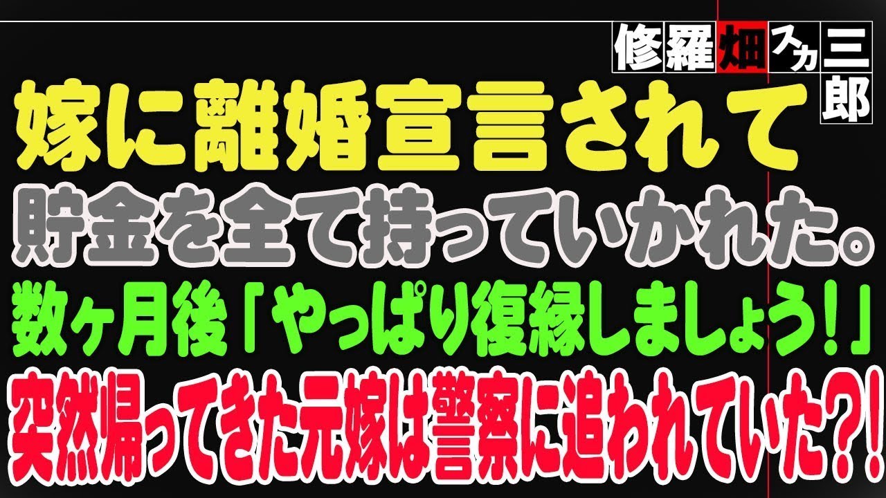 【修羅場】嫁に離婚宣言されて貯金を全て持っていかれた。数ヶ月後「やっぱり復縁しましょう!」突然帰ってきた元嫁は警察に追われていた?!
