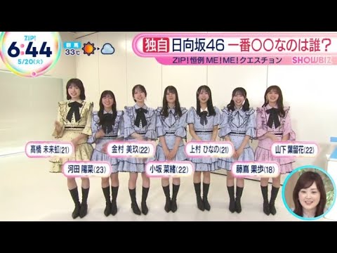 では日坂46 がジップの定番企画ミーミークエスチョンに初挑戦。新客店が本音で明かしてくれました。 me 行くぞ。 [拍手] [音楽] デビュー6 年、東京ドームを満員にするほどのグループに成長した日向坂 46。 私たち日向坂46です。せーのジップ ジップ。 [音楽] そんなメンバーの魅力や素顔にまっていく企画大して 1番は誰だ?クエスチョン。 質問の内容に対し自分が1 [音楽] 番いいと思ったら札を取って答えていただきます。挑戦するのは小坂さん、金村さん、上村さん、高橋さん、川田さん、藤島さん、そして山下さんの 7人。意気込みはいかがでしょうか? 全然ありますね。あ、 私だと思います。い やね。 坂道グループの先輩として少し緊張気味の後輩をほぐしたいと明るく聞いちゃいました。先輩 第1 問。キュンキュンキュンキュンどうして? キュンキュンキュンキュンどうして?あ、嬉しい。 すごいないでいいのかなとか思ったら皆さんやってくださった。 [音楽] では行きます。はい。この中で1 番グループアが強い人はみんな強そうだけど [拍手] みんな出てくるスタイルだね。 うん。最後どうするか。あ、やっぱり。 あ、そうか。 確かに1 番グループアが強いのは1つ2 高橋三国です。 さあ、キャプテン一期制としてキャプテンを務めてきた佐々木さんが先月卒業し、新キャプテンに就任したのが高橋さんです。みんな強いのはもちろんな全員のブログを読むのがすごいそうなんだ。皆さん知ってました? [音楽] 知らないです。 知られてるんだな。ちょっと恥ずかしいです。はい。 キャプテンとしてメンバーのブログをチェックしていると 私がキャプテンを務めることになった際にこう一言添えてくれたりとかメンバーの温かさをすごく実感しました。仙代のキャプテンは佐々木くみちゃん。くみちゃんもあのまさにくちゃんなら大丈夫だっていうのを言っていたのがすごく私は印象的だったのです。 [音楽] 高い言葉をいいて その言葉を活力に今すごく頑張ってます。 うん。 そんな新体制になり初めてリースする新曲がラブユアセルフセンターを坂には務めます。 私がそのセリフで金君のままでいいんだってこう言ったりとか元気づけられるような曲になってると思います。 [音楽] 君が君た。 [音楽] 来週にはアリーナライブの開催。新しいスタートを聞ってます。そこで第 2問。この中で1 番ライブを最好調に導く盛り上げ隊長は [拍手] 待って。盛り上げ隊長後ろから行った。1 番盛隊長なのはつ藤島かほです。 [音楽] ライブの許始まりの時に煽りをつも担当しているので、 その煽りをつもライブ前は気合を入れて うんうんさへって言ってまし 藤島さんの煽り違うなとかってちょっと思いますか?ですね 2倍3 倍とぐっと上がる感じはありますね。 あります。 盛り上がる準備できてますか?イ そんな藤スさんがライブで見てみたい煽りの提案が 大阪とかも大阪出身なので見たいですね。あ あ、いいですね。どんな感じでね。あ、確かに煽るんだろうか。 [音楽] やべとか。ああ、めっちゃかいい。 めっちゃいいです。 ちょっとじゃ、小坂さん、それをつかライブで ああね。でもいいです。やって いつかやりました。 痛いですね。さんどうでしたか ね。新も新キャプテンを中心になんかとてもチームワークが良さそうで安心してね、先輩たちも小道をね、こうんでしょうね。本とミーミークエスみんなも行くぞ行くぞ行くぞ。本とかいいです。新曲は明日発売です。 有効ニュース来