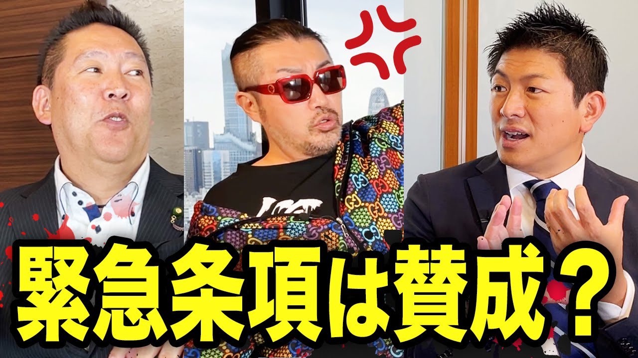 ごぼうの党の奥野卓志氏、参政党の神谷宗幣氏、NHK党の立花孝志氏。それぞれの改憲や緊急事態条項に対する主張です。