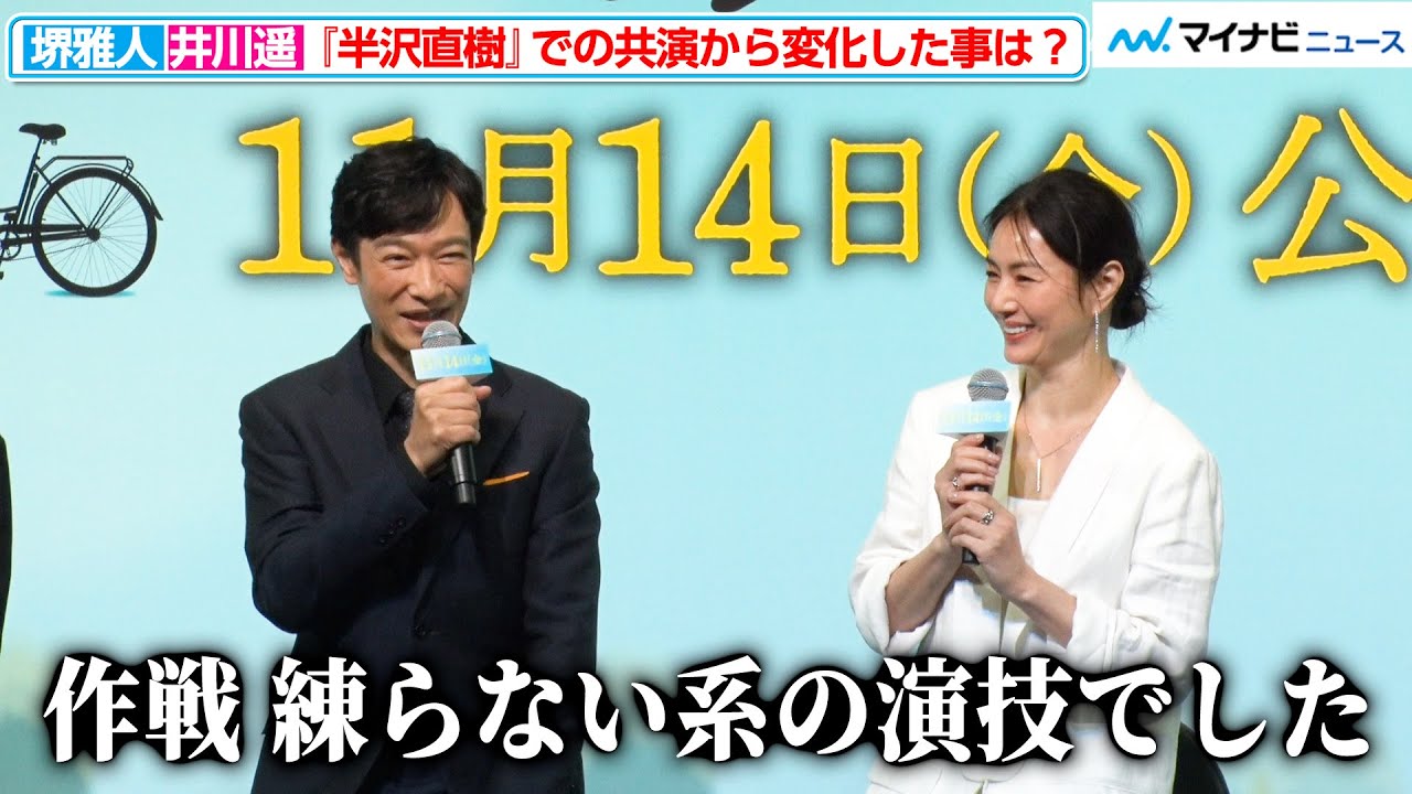 作戦狙ない系はい。演技でした。 そう。我々の世代のお話をね、何か作ってくれたらいいよね。なんていう風に言っていて。 お調子物の部分と 汗だ冬なのに。 [音楽] 今回あの私もびっくりしたんですが酒井さんあの現代劇のラブストーリーの主演は初めてと。 あ、そうなんですか。はい。 そのように伺っておりまして。 あら、驚きました。 あ、僕も驚きました。あ、そうですか。 はい。 あ、でもはい。井川さん、あの、お相手井川さんだったので本当にあの、何の気というかはい。あの、苦労かあれもなく全部任せて、全部相談して、全部ね、やっていけたので。 そうですね。 結構井川さんが引っ張っていかれたんですか? あ、いやいや、そんなとんでもないです。 もうなんかまた井川さんのことをますますこう魅力的だなと思う。はい。なんかね、共演はしてるんですけどうん。うん。 俺こんな人だったのかっていう。 そう。なんだかこう2 人きりのシーってそんなに今までなかった。 なかったんですよね。 そうなんですよ。そっか。2020 年半澤直樹ね、ご一緒でしたけれども あの時はちょっとこうしっとりしたさ。 そうですね。あともなんかこう作戦をね、 作戦ばっかり出てたんがちょっと作戦狙ない系のはい。演技でした。そうですね。 ではなく愛を育んでいくという ね。本読ませていただいて、 あの、いわゆる中年の私たちのお話ってなかなかないなと思いまして、あの、酒井さんも覚えてらっしゃるか分からないんですけど、実は半澤直樹の時にここに追川さんもいらっしゃるんですけど、我々の世代のお話をね、何か作ってくれたらいいよね。なんていう風に言っていて、 そんなこと言ってました。 はい。話したんですよ。 あ、そうですか。 そしたら今度は今回は恋人役ということで はい。あのドキドキしながら読みました けれども何でしょう。監督もおっしゃって たみたいに、あの、やっぱりダメなところ があって、いびなところがあって、ま、私 が演じた須藤という女性はすごく追い立ち が大変で、そこからの何でしょう? 初恋同士といえも、ま、その後の、ま、 再開するまでな時間というのがなかなか 濃く、ま、 ちょっとアンバランスなところがあって 言葉選んで そうですね。だからまた再開できたって いうことで、まさかのもう1回人生が始ま るっていう感じで、あの、まあ、なんて 言うんですかね、この年齢だからこそ 感じるお互いへの 思いすれ違いとかなんかすごくもかしくて ないと思いながらはい。演じていました。 えっと、お二方は、えっと、半沢直沖き以来の共演だったんですけれども、えっと、今回の撮影を通してなんかお互いが、えっと、変わったところ、変わってないところ、何かエピソードがあればお聞きしたいんですけれども、よろしくお願いします。 えっと、僕は井川さんのことを本当に 優しくて、えっと、すごくクレバーで素敵 な女優さんだと思っていたんですが、今回 にプラスしてちょっとこう浮かれる部分も あって、お調子の部分と そしてじっとしてられない人 あの寒かったんでずっと井川さんに井 体操を教えていただいたんですね。 で、その体操が本当にあの動画にあげてずっと流しておいて欲しいぐらい的確でなんかあの本当に似たような先生を探してるんだけど今はかを超える先生がまだ見つかってないんだよ、俺は。なんかね、ここを動かしてくださいって、そのちいち指示が的確で、でもな、あの、ごめんなさい。 変な話になっちゃいましたけど、えっと、 ちょっと少女の部分というか、あの、今 まで大人の井川さんの役が割と多くて、 あの、ちょっとこう押さえてるような抑え の演技の井川さんが多かったんですが、 今回その中でこう弾けるお芝居だったので 、あ、井川さんってこんなにこう跳ねる人 なんだっていう、それがとっても意外で、 とっても素敵だなと思いました。 あの、体操の話はまた機会があれば是非、あの、しますけども、本当にあの、勉強になりました。はい。 半ザナきよりも前に多分お互いに20 代ですかね。これは20代でした。結構前 から何度かご一緒してたんですけれども、 何でしょう?今回本当に2人っきりの シーンが多かったので、酒井さんが本当に こうたくさんの主演策をされてる中で 真ん中に立つ人のすごくミキのあるどっり とした感じと本当に温かくてなんが酒井 さんがいることで本当に穏やかに優しい 気持ちで進んでいける。あの、さっきね、 あの、ゆりちゃんも言ってましたけど、 本当にどこまでも優しくて、そういう愛に 溢れている方だなと思ったんですね。で、 でも朝毎朝お互いにあの子供を送り出して くるので汗だで冬なのに朝の報告は今朝は どんなあのハプニングがあったかっていう ところから始まりましてなんだか生活の中 にあのこの映画があったような感じもして いました。やっぱり酒井さんってど真ん中 に立つ方なんですけど、すごく平場のそう いう日常のそういうみ