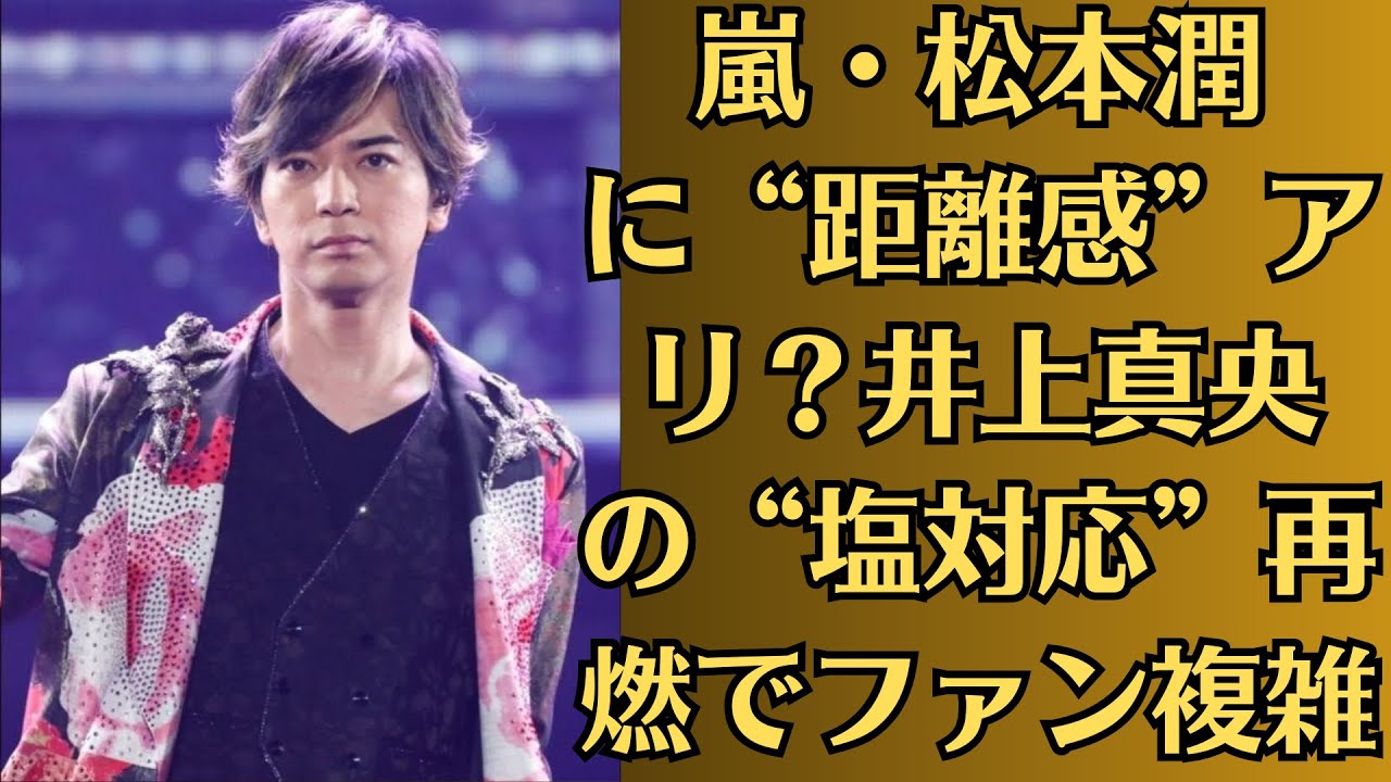 [音楽] 国民的グループ嵐のメンバーであり、現在 は俳優としても高い評価を得ている松本順 。そんな彼を巡る距離感の音が再びSNS を中心に加熱している 。きっかけはかつてドラマ花より男子で 共演し長年結婚読みとも言われてきた女優 井上の最近のイベントでの微妙なやり取り だ。表向きは笑顔を見せつつもどこか よそよそしい空気が流れまおちゃんの塩 太陽が再びという声が多くのファンの間で さやかれている 。距離館0の松順に編今年5月防大手配信 プラットフォームの新作恋愛ドラマの制作 発表会見に松本と井上がサプライズ登場 久しぶりの同フレームにファンは換期した がその空気はどこ勝ちハグだった 。記者の質問に松本が現場では昔と変わら ず楽しくやらせてもらってます。と笑顔で 答える一方で井上は収支控えめな受けこえ を貫き松本に視線を合わせる場面も 少なかった 。イベント後SNSにはうるお君だけが 頑張ってる感じ。まおちゃんなんか 冷たかった。2人の間に壁が見えるといっ た反応が殺当距離感ゼロで知られる松本順 にとっては意外な形で注目が集まることと なった 。井上魔王の塩太陽最年の背景とは実は 井上魔王の塩対応は今回が初めてではない 。過去にもバラエティ番組や舞台挨拶など で共演者に比べて控えめすぎる振る舞いが 話題になったことがある。 芸能記者はこう語る。まおさんは クライベートを明かさないことで有名です 。特に松本さんと絡む場面では過剰に注目 が集まるためあえて距離を取っている可能 性もあります。過去の関係を匂わせること で騒がれるのを避けたいのかもしれません 。一方で間の間ではまおちゃん何か不満が あるのでは一方通行に見えて切ないという 意見も多く特にかつて2人の交裁を応援し ていた花尾世代のファンにとっては複雑な 思いが広がっている 。松本は悪継続中近年のインタビューで 松本はクライベートも充実させたい心から 信頼できる人と一緒にいたいと発言して おり結婚への前向きな姿勢を滲ませていた 。その一方で過去の関係が今も続いている のかという問いには決して言及せずカの 想像を書き立ててきた現場関係者によると 撮影中の松本は井上に対して優しく接して いたがどこか一戦を超えない配慮が見えた とのこと 。これに対し井上は必要以上に関わらず 感情を抑えていたように見えた。という ファンの声はサンピ両論SNSではこの塩 対応最年に関して意見がマップ立つに分れ ている。距離があるのは仕方ない。今は それぞれの道を歩んでいるんだから 。あれは逆に関係があるからこそ距離を 取っているように見えた。グルだけが 頑張って見えて切ない。まおちゃんの黒 意識の高さだと思う。さらに一部では最強 は嬉しいけど、もう無理に匂わせなくて いい。これで関係を生産したのではという 冷静な声も聞かれた 。今後の2人はどうなるのか。今後松本と 井上魔が再び本格共演するのか、あるいは それぞれ別の道を歩むのか間の間で注目が 続いている。たるテレビ関係者はこう語る 。 話題性があるからこそ政作者側としては 2人をセットで売り出したいという思惑は 常にある。しかしそれが本人たちの気持ち とずれていれば今回のような違和感が 生まれるのは当然です [音楽] 。国民的カップルとも消された松本と井上 を再び注目を集める中で見えてきたのは 年齢を重ねた今だからこそのリアルな距離 感だったのかもしれない。微妙な空気の中 に隠された本音とは何なのか2人の関係の 答えまだ誰も知らない。 [音楽]