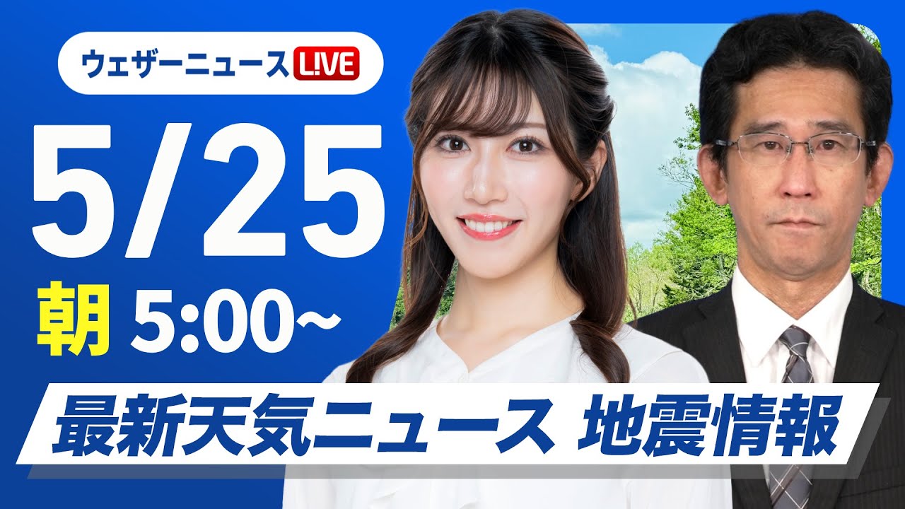 【ライブ】最新天気ニュース・地震情報 2025年5月25日(日)/東日本や北日本は雨の強まりに注意〈ウェザーニュースLiVEモーニング 魚住茉由・山口剛央〉