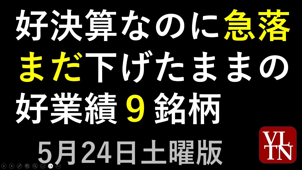 まだ下げたままの好決算なのに急落した好業績9銘柄。5月24日土曜版~あす上がる株。最新の日本株情報。高配当株の株価やデイトレ情報も~