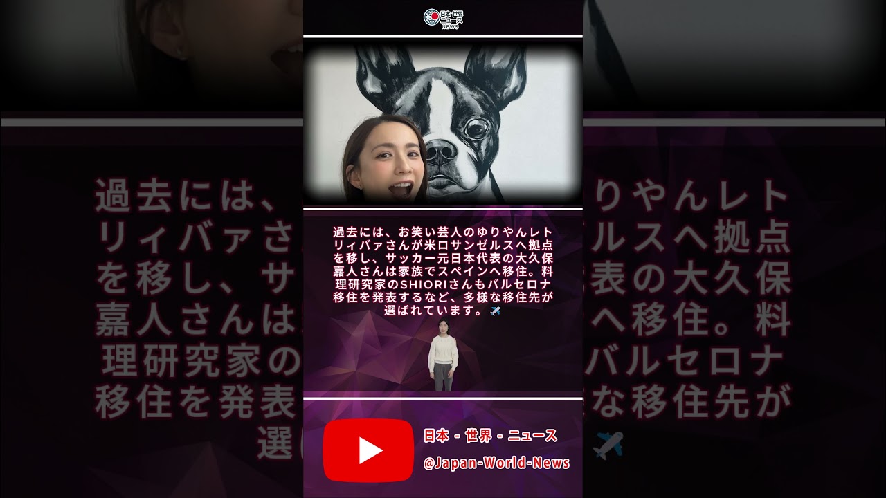 過去には、お笑い芸人のゆりやんレトリィバァさんが米ロサンゼルスへ拠点を移し、サッカー元日本代表の大久保嘉人さんは家族でスペインへ移住。料理研究家のSHIORIさんもバルセロナ移住を発表するなど、多様な移住先が選ばれています。✈️