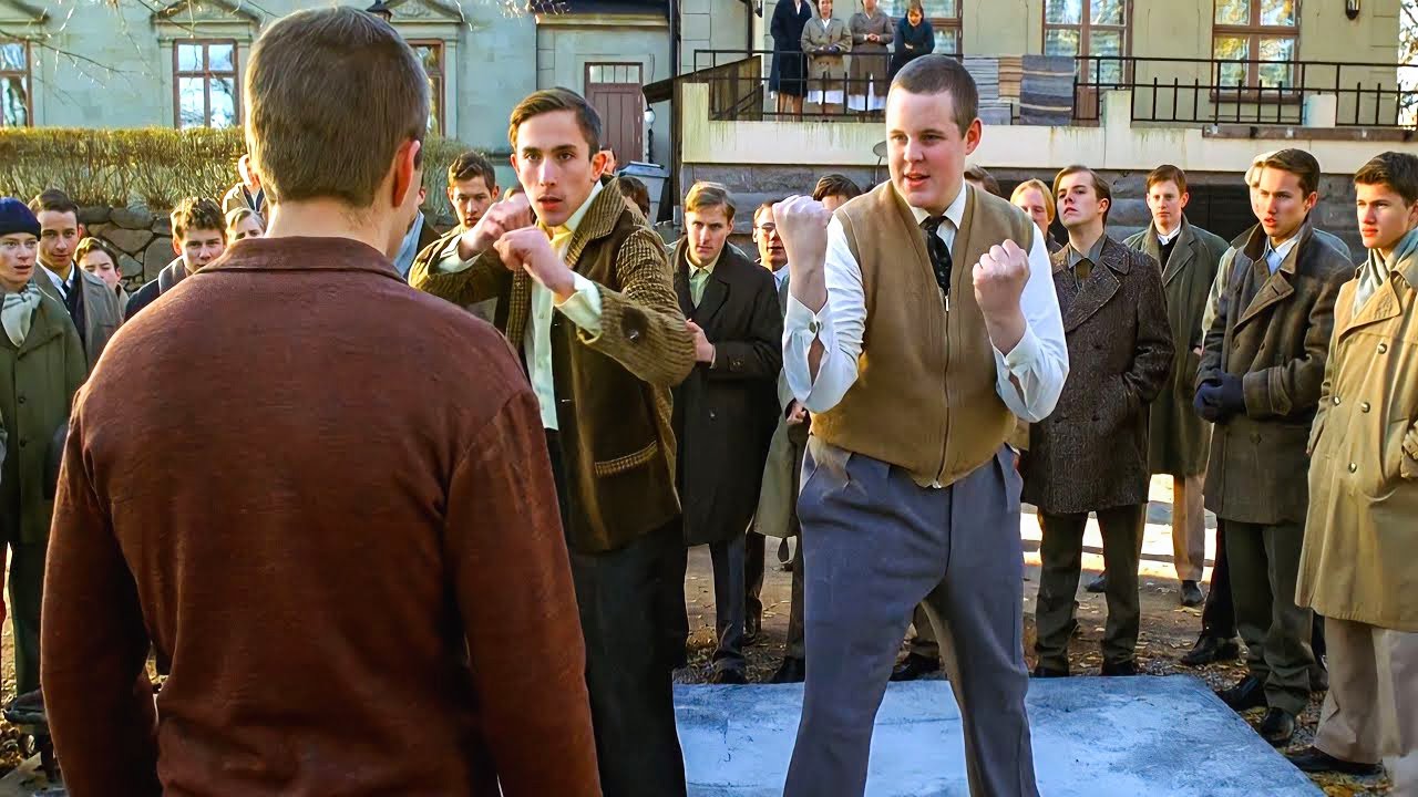 映画はエリックという名の制言が友人の 1人と殴り合いの喧嘩をしている場面から 始まる。理由は誰にもよくわからないが、 エリックは友人を容赦亡く殴り、周りの 仲間たちはただ防寒しているだけだ。 エリックの恐ろしい評判のせいで誰もあっ て入ろうとしない。短期で喧嘩っぱ早く常 にも目事を起こすことで知られる彼は周囲 の者たちを追圧していた。間もなく エリックは校長室に呼び出される。校長は エリックの暴力行為と絶えまない問題行動 にうんざりし、我慢の限界に達していた 校長はためらうことなく、その場で エリックを退学処分にするエリックが帰宅 すると同場ではなく罰が待っていた。警府 は暴力事件と退学のことでエリックを無で 打つ。母親は状況を把握していながらも 介入しない。むしろ息子は自分の謝ちから 学ぶ必要があると考えている。彼女にして みればこの経験がようやく息子を目覚め させるきっかけになるかもしれないのだ。 その後エリックの母親は彼を友人の軍ナー という弁護士に紹介する。軍ナーは エリックに名刺を渡し、何か困ったことが あれば電話するようにエリックは何が何だ か分からずと間取りながらも名刺を 受け取るが何も言わない。軍ナーが去ると エリックの母親は深い失望を口にする。 しかし、同時にエリックを新しい学校に 入学させる手続きを取ったことも明らかに する。彼が男子全性の学校であるカンズり に通うことになると告げる。これは エリックにとって最後のチャンスだ。母親 は彼が態度を改め2度と退学にならない ようにしなければならないと釘を指す母親 の言葉の重みを理解したエリックは頷き、 この新しい学校に通い卒業し、母親を誇り に思わせると約束する。エリックは制服を 着て紙をきちんと借り込み、より起立 正しい印象でカーンズバりに到着する。彼 に割り当てられたルームメイトは学校で 1番の優等生であるピエールだった。2人 は会話を始め、すぐに生き合する。 フィエールの鬼作な性格はエリックがこの 慣れない環境でより安心できるように助け た。その夜生徒たちは夕食のためにホール に集まる。エリックはピエールと合流し、 ヨハンという別の生徒に出会う。ヨハンは この学校も他の多くの学校と同様にある種 の伝統の下で運営されていると説明し 始める。ここでは生徒たちは社会的地位に 基づいて扱われるのだ。ヨハンが話しを 得るかないかのうちにテーブルの橋にいた 夫スタフという2人の生徒がエリックの 近くに座っていた生徒を呼びつける。 呼びつけられた生徒は失素な家庭の出身で あるのに対し夫藤トグスタフは裕福な貴族 の家柄だ。特権的な家柄のため夫藤と グスタフは恵まれない家庭の生徒たちを 頻繁にいじめていた。彼らの家族が学校に 大きな影響力を持っているため、その行動 はされている。さらに彼らは生徒会の メンバーであり、それによって同級生に 罰則を貸す権限が与えられていた。夕食後 、ピエールはエリックを喫煙に誘う。 エリックは問題を起こさないようにという 母親との約束を思い出し、ためらう。 ヨハンはもし喫煙が見つかればバツは 厳しいと警告する。リールは大丈夫だと 受け、エリックはついに折れる翌朝の朝食 夫スタッフがエリックに声をかける。彼ら は新入生への歓迎の挨拶を予想うが、本当 の目的はいわゆる学校の伝統を彼に 教え込むことだった。エリックは従うこと を拒否する。その結果代わりにヨハが標的 になる。夫藤はヨハの頭に怪我をさせ、 ヨハは医療スタ府によって治療のために 運び去られる。その日の言が倒く 夫スタッフは別の悪を試みる。彼らは エリックを自分たちの本部に呼び出し、床 に散らかった汚れた靴の山を片付ける。 エリックは再び拒否して立ち去る。 グスタフは明らかに苛立ち、夫にエリック をどうすべきか尋ねる。しかし夫は冷静な ままでエリックはまだ新入りだから今は 放っておくようにトグスタフに告げる。 エリックはその出来事についてピエールに 打ち明ける。リエールの態度は即座に 変わる。彼はエリックに夫をトグスタフに 2度と逆らわないように警告し、彼らに 逆らう生徒はしばしば厳しい結果に直面 すると説明する。かつて自分もいじめっこ だったエリックは彼らを恐れていないと 言いはる。彼らの命令には決してこめし ないと主張する。その夜エリックとピエル は暴力に頼らずに夫をトグスタフの支配に 抵抗する方法を考え出そうとする。しかし 、ほとんどの生徒があだらけにされたり 屈辱を受けたりするよりは従うことを選ぶ ため、それが難しいことに気づく。翌日、 グスタフが廊下でエリックにぶつかる。彼 は謝罪を要求するが、エリックは拒否する グスタフが自分にぶつかってきたのであっ て、その逆ではないと指摘する。激怒は その夜バトルアリーナとして知られる場所 でエリックに血闘を申し込む後にピエール とヨハンはエリックをその場所に連れて 行く。ピエールは夫藤と
