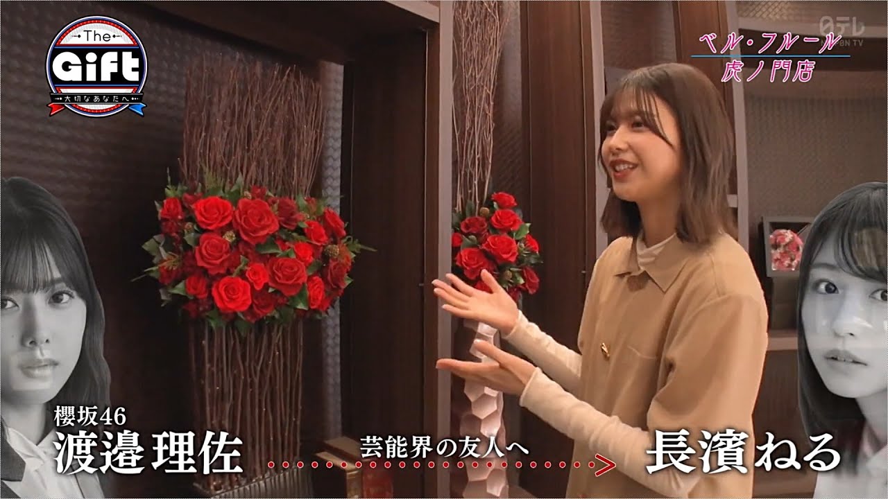 櫻坂46渡邉理佐、欅坂46メンバーと初共演!普段からお世話になっている友人・長濱ねるにギフトを贈る渡邉理佐「ねるいつもありがとう」お世話になっている友人・長濱ねるにバラのプリザーブドフラワーを贈る」長濱ねる「無理せず一緒に頑張ろうね」渡邉理佐からバラのプリザーブドフラワーを贈られ感謝4/12放送「The Gift」
