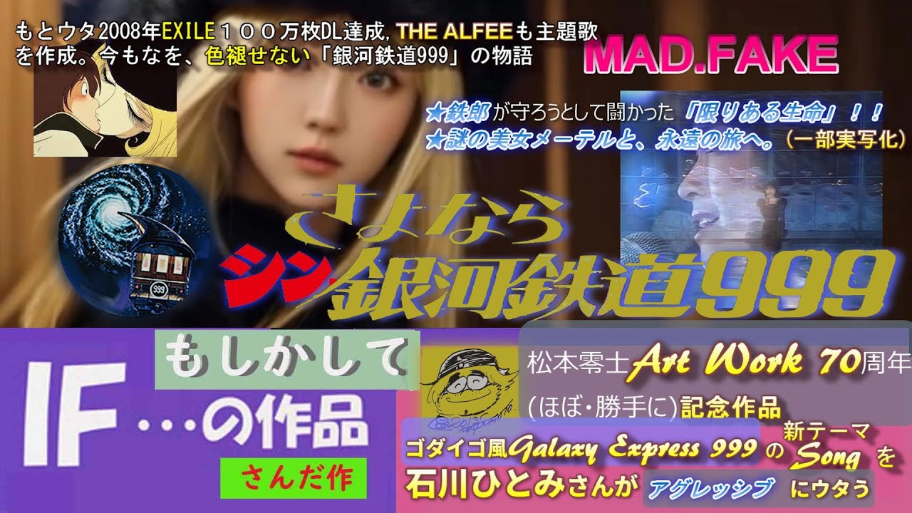#EXile#THE ALFEE #ゴダイゴの#銀河鉄道999のウタは知っているけど、テレビ版・映画版の物語知らないという方、意外に多いので、そのきっかけとして、また2023年に永眠された、#松本零士氏が、初めて1954(昭和29年)、15歳で投稿作「蜜蜂の冒険」が『漫画少年』(昭和29年2年号)に掲載されデビュ―してから、ほぼ70周年の記念作品として作成しました。初回劇場版は、#テレビ版泰一話はhttps://www.youtube.com/watch?v=d0iwi6sZ5LEで視聴できる。宇宙戦艦ヤマトを遥かに凌ぐ作品。#松本零士氏の代表作のひとつ(当時は「#宇宙戦艦ヤマト」も監督として、松本零士のクレジットでしたが。)
