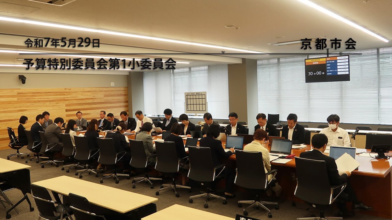 え、田から予算特別委員会、第1省委員会 を開会いたします。え、地産届けがム田 復省委員長から提出されております。え、 本日は本委員会の不託されております議号 令和7年度京都市一般会計補正予算のうち 本委員会に関係する部分の審査を行います 。本日の審査の方法については今回の二 議案に関係する各局の出席を求めて議案の 説明を聞いた後質疑を行っていくことと いたします。局の審査の順番については、 え、業財政局保険福祉局の順といたします 。本日の質疑時間については、え、今日1 日の各会派の質疑の持ち時間をモニターに 表示しておりますので、この範囲内で質疑 を行っていただきます。また、1人1回 あたりの質疑の制限時間は答弁を含め概と いたします。なお、質疑の持ち時間が30 分未満の会派についてはその持ち時間を 制限時間といたします。次に質疑の順番に ついては議案の説明を聴取した後、質疑 希望者の挙取を求め、大開発順で発言を 認めていくことといたします。具体的には まず交渉会派が大会派順に質疑を行い、次 に民主市民フォーラム会信教との順と いたします。また質疑は不託区議案から 外れないようにお願いいたします。合わせ て行政局に対しては予算編成当局として その方針等について議をすことは可能です が、各局が予算計上している各事業につい ての個別具体的な質問は行政局に対しては ご遠慮いただきますようお願いいたします 。次に本省委員会における、え、下期の争 、いわゆるクールズについては議会の品を 損わない範囲で自由といたします。理者に 対してもその旨をあらかじめ伝えてあり ます。 最後に本日は議会活動に関する情報発信の充実に向けた写真撮影を行いますのでご聴き願います。以上ご了承お願います。それでは業制局の審査を行います。理者説明願います。大衛村部長。 はい。え、それでは、え、 着席してご説明ください。 ありがとうございます。 それでは本会に提案しております補正予算 のうち業材局関係文をご説明します。議案 説明資料ナンバー2の1ページ令和7年度 5月法正予算の概要をご覧ください。今回 の補正は公共施設の有効活用にかかる整備 構想の策定や新型コロナウイルスワクチン 定期摂取等を行うための予算を計上しよう とするものです。1補正予算の規模は一般 会計における 14億8800万円です。2ページにお 移りをいただき3補正予算の財源打ち訳け です。表下団の合計欄に記載の通り、その 他特として初収入5600万円、また財金 を活用し、一般財源 14億3200万円を財源として計上して おります。参考として財政調整基金の状況 です。財政調整基金は今回の補正予算の 補正予算で活用した結果、令和7年度末 残高見込みは90億6100万円です。 説明は以上でございます。ご審議のほど よろしくお願いいたします 。あ、ありがとうございます。それでは 質疑のある方は挙願います 。はい、ありがとうございます 。 ここで確認のため質疑通告者と順序を申し上げます。はい。これ言うんですか?はい。え、 1 番目が口委員、え、加藤愛員、平山和委員の順番に質疑を行います。え、通告漏れの方はおられませんか? はい、では順次発言を許します。谷口委員。 田口議員、 おはようございます。よろしくお願いいたします。え、私の方からは、え、財政調整基金について、え、お伺いさせていただきたいと思います。 え、まず今回提案されました補正予算、 その財源として 14億3200万円の財政調整基金が活用 され、その結果今年度末の残高見込みが 90億6100万円となっておりますが、 この中にはあのすでに活用があの方針が 決まっているもの、そうでないものがある かと思いますけれども、打ち訳はどのよう になっているか教えていただきたいと思い ます 。はい。え、稲財政出 はい。え、財政調整基金、え、令7 年度の残高の、ま、打ち訳けということでございます。え、ま、約 91億円ございますけども、え、このうち、あの、丁寧延長に伴いますの成分が 21億円。 それから、あの、災害時等の緊急時への対応といたしまして 50 億円で、え、残るあの20 億円が、ま、今後活を検討していくものと、ま、そういう内訳となってございます。 田口内委員、 ま、あの、今後、あの、自由に使いたいていうものが、ま、検討できるものが、ま、約 20 億円でこの、ま、20 億円の今後をどのように活用しようとしているのかって、あの、思、どのように活用されているかというその前に、あの、この 20億円、えっと、多いのか少ないのかいものなんですけれども、私たちにとったらこれが多いのか少ないのか、もう 1つ、あの、ま、一般市民 の皆さんにも説明する時にどうお伝えしたらいいのかと思いますので、ま、適正な規模はどの程度かなどあの考えをお聞きしたいと思います。稲財政出長、 えっと、財政調整基金でございますけども、まず、あの、新共戦略におきましては、え、財政運営上の留意事項といたしまして、え、災害等