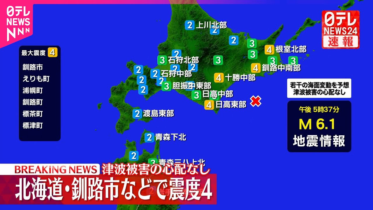 #地震 #震度4 #北海道 #日テレ #ニュース