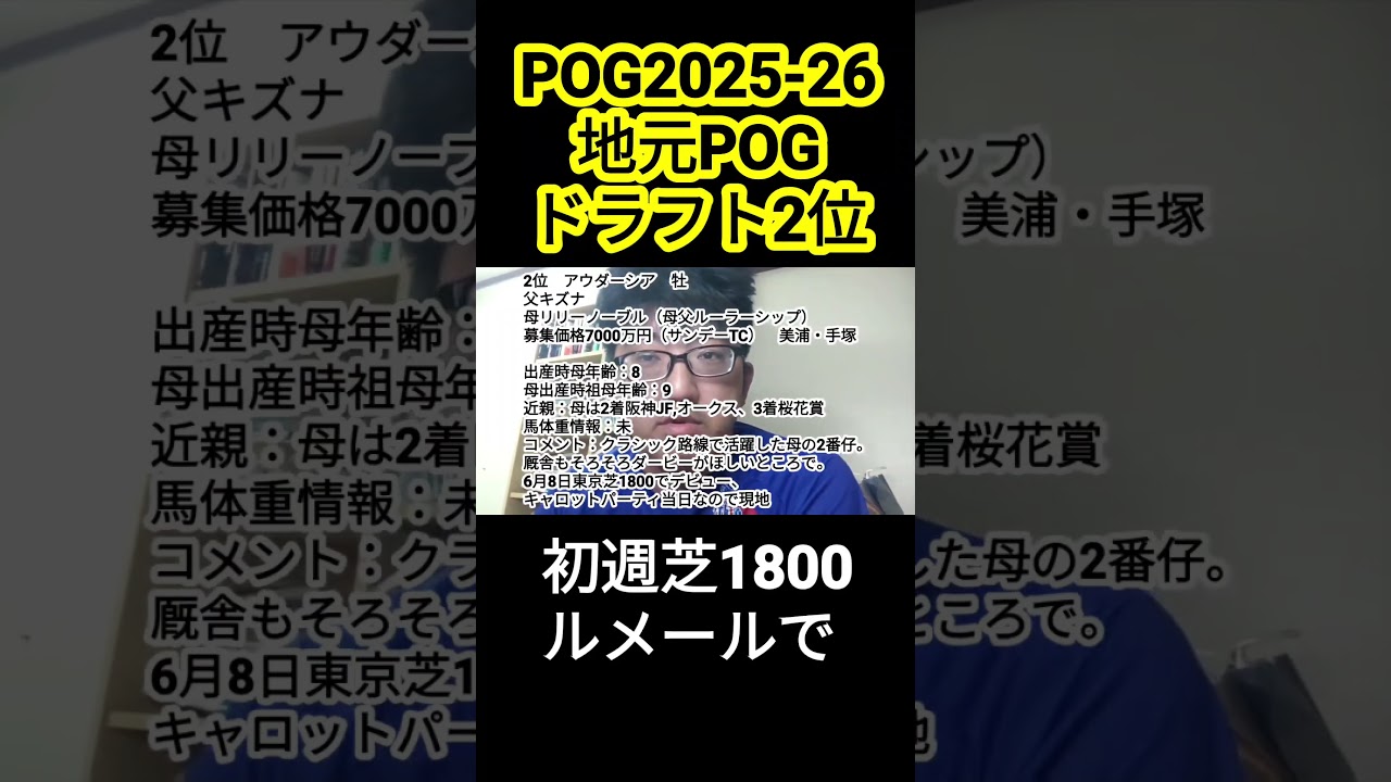 はいPO2025から26地元のドラフト 終わりました指名まそして第2位ドラフト 2位がアウダーシアボバ父絆母リリー ノーブル母の父ルーラーシップ募集価格 7000万円でサンデーレーシングの募集 版日本の手塚急者ですね出産時の母の年齢 が8歳母出産時の祖母の年齢が9歳 お母さんは阪神ジベナイルフリーズ オークス2着大花賞3着ということでま クラシックで活躍したお母ちゃんの2番で ま手塚急者も手塚先生もねもうそろそろ さすがにダービー欲しいよねっていう息に 達してきたま去年の需要戦トリックが骨折 したにも関わらずね10月のレースで骨折 して9ヶ月の未舞金復旧は早くて8月と かっていう流れの中 で3月からね乗り運動2月からね乗り運動 を始めたりもしてたぐらい手塚先生のとこ にダービーをって思いはノーザンファーム とども強いはずという流れの中での6月8 日東京芝1800デビューまあキャロット パーティー当日なんでねあのサンデー レーシングのだからあの直接は関係ない けど俺がね指名しとけば見に行け るってのもありますまそんな中でねまこれ をどうするかまちょっと追いきりの動きと して手塚先生は不満を述べてるしルメール はまでも大丈夫じゃねみたいなまあね新馬 線2着3着でもねえっとダービー目指す分 には悪くないからねという中でまここもね ま色々駆け引きというかね地元のドラフト でねあのちょっと集合というかドラフトの 開始が予定より1時間ぐらい遅れちゃって 来週にすっぺかまあね来週に延期し ましょうかってまあの2以下は第1週で デビューした馬なしでって言ってたらいつ もねあのだ6月デビューの馬をね俺と同じ ぐらいかもそれ以上に多く指名する人が ドラフトやりたがってねまそれでなんとか みんな集まったんであじゃああじゃあ先に いただきますという感じで取ったのがこの 馬みたいな感じまこれもだから駆け引きで 2にで取った馬ですね