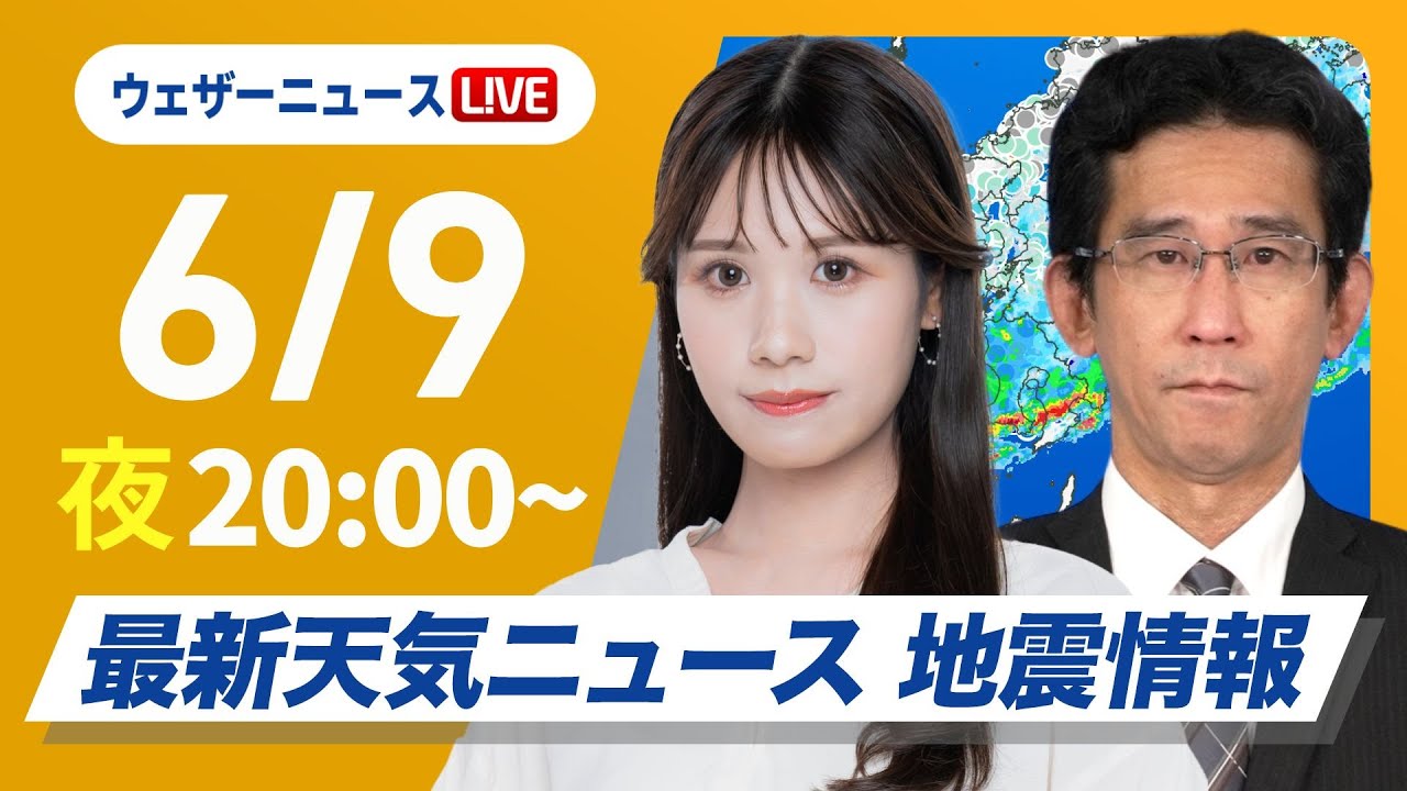 【ライブ】最新天気ニュース・地震情報 2025年6月9日(月)/九州南部で非常に激しい雨〈ウェザーニュースLiVEムーン・戸北 美月/山口 剛央〉