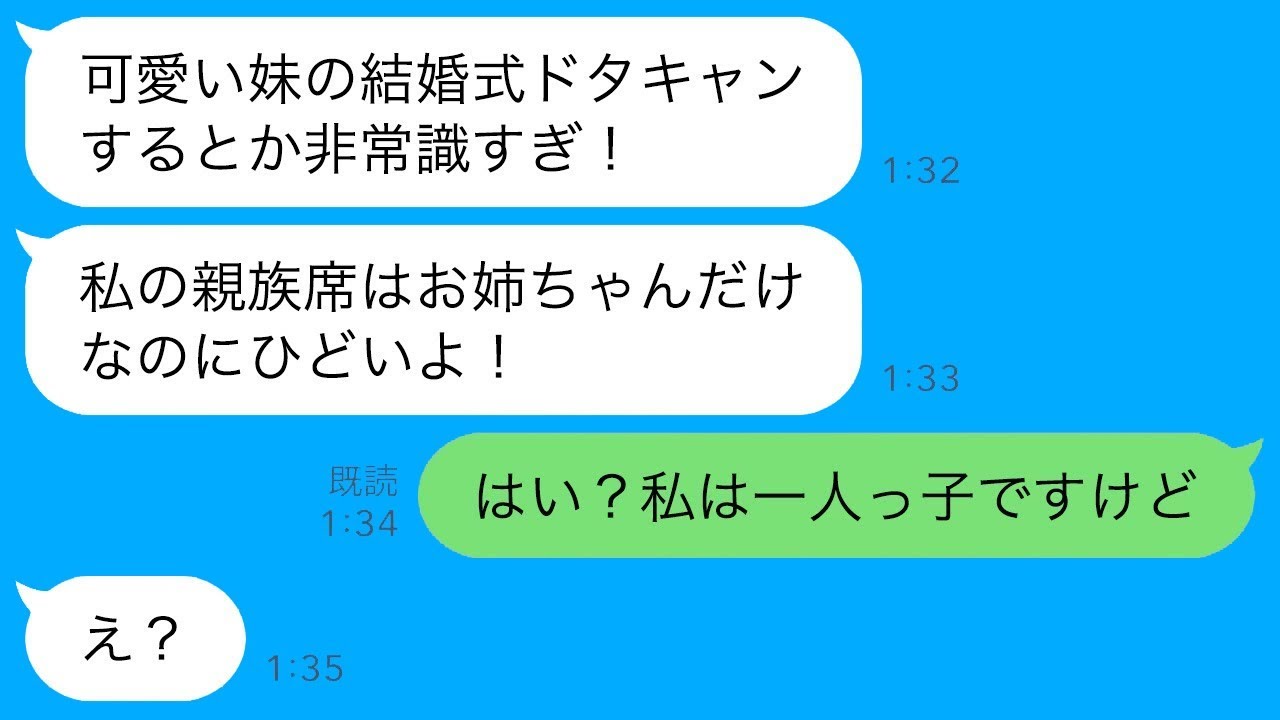 結婚式の日に激怒した妹が絶縁を宣言「姉なのにドタキャンするなんて非常識!」私「え?一人っ子なんですけど」→3年後、妹に反撃した結果www